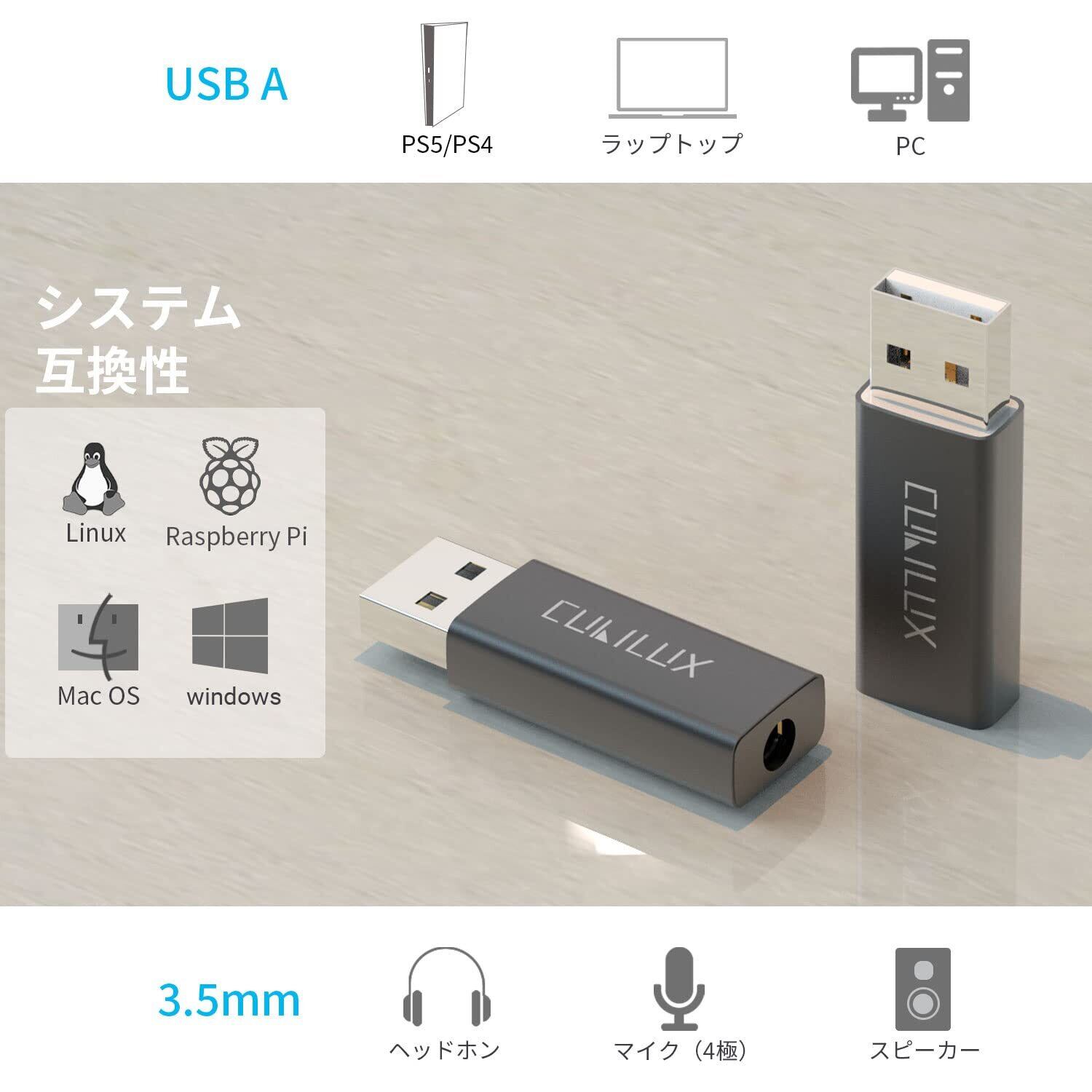 - USB Aから3.5mmイヤホンジャックへの簡単変換!