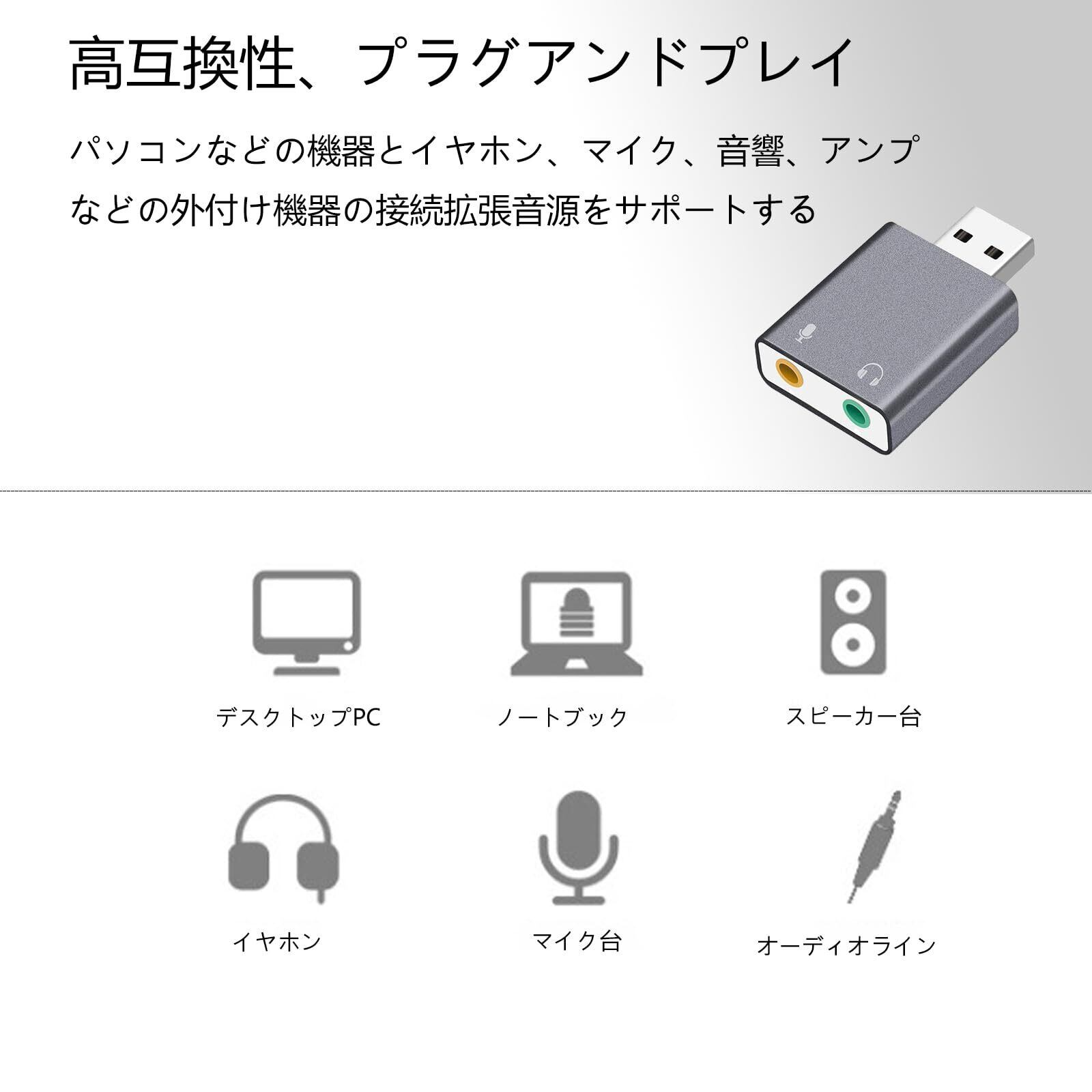 - お使いのデバイスによっては互換性の確認を推奨いたします。この『USB オーディオ変換アダプター』が皆様のオーディオ環境を一層豊かにすることを期待しております!