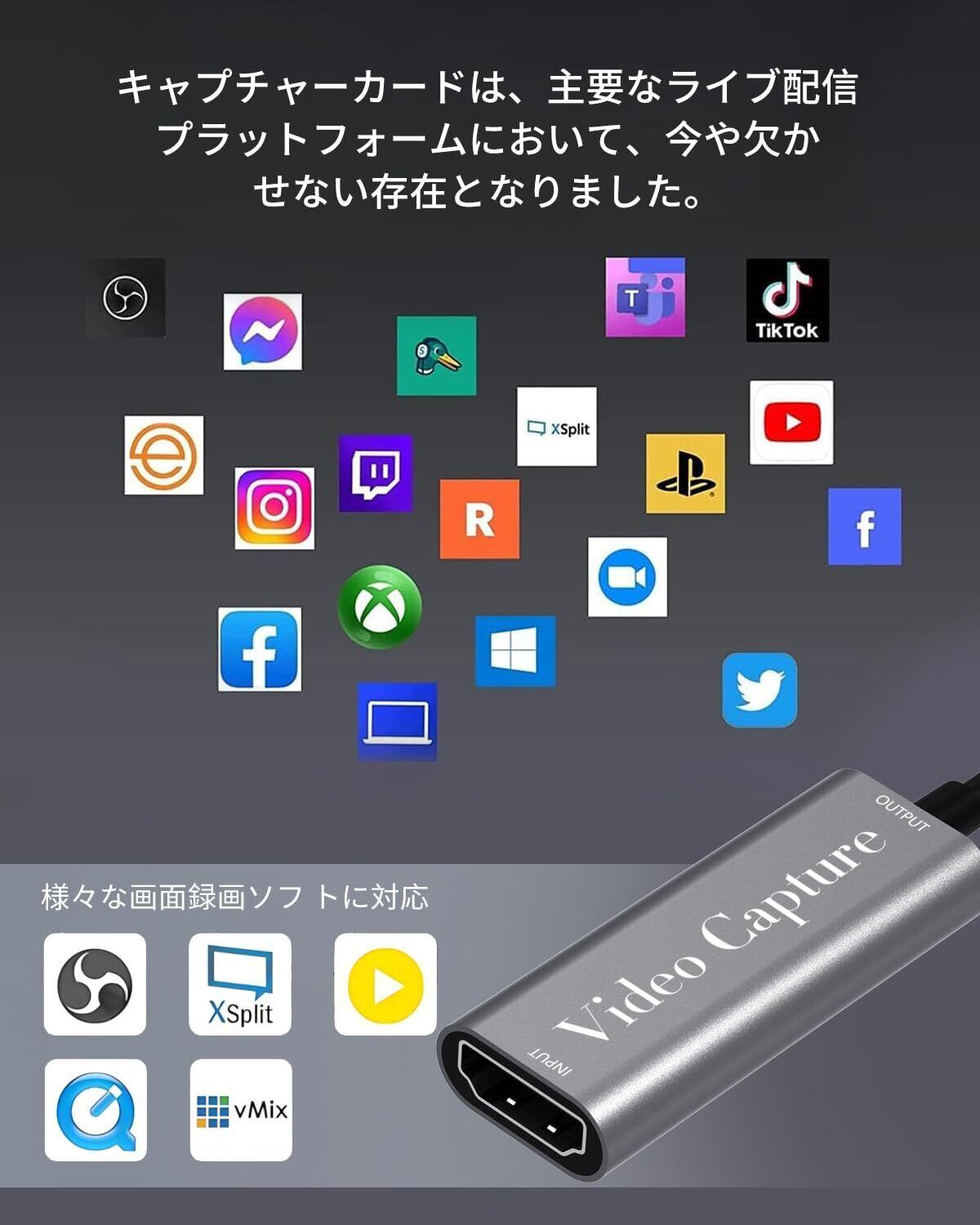 「Windows 7/8/10やLinux環境でもサポートされており、OBSやPotplayer、YouTubeなどのさまざまな配信ソフトにも対応しています。あなたのプレイスタイルに合わせて、自由に活用できます。」