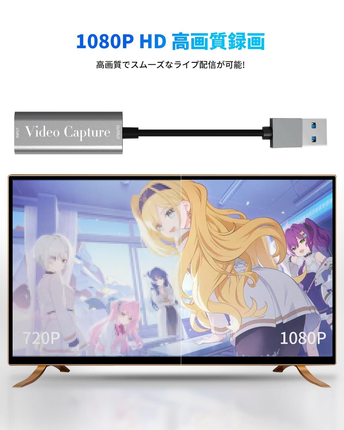 「この『USB3.0 キャプチャーボード fuyi』は、ゲーム実況やライブ配信に最適なアイテムです!4Kパススルーに対応し、1080Pの高画質録画が可能になっており、Switch、PS5、Xboxなど多様なゲーム機との接続が簡単に行えます。」