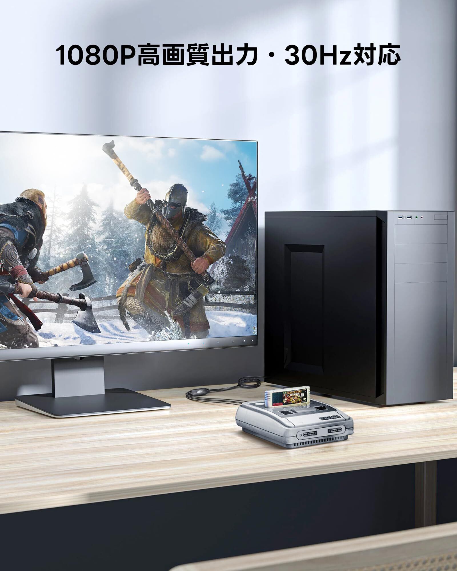 「RCAおよびS-Video入力を搭載し、様々なビデオデバイスに対応。テープレコーダーやVCR、DVDプレーヤーなど、幅広い機器から接続可能です。接続も簡単で、特別な設定は不要です!」