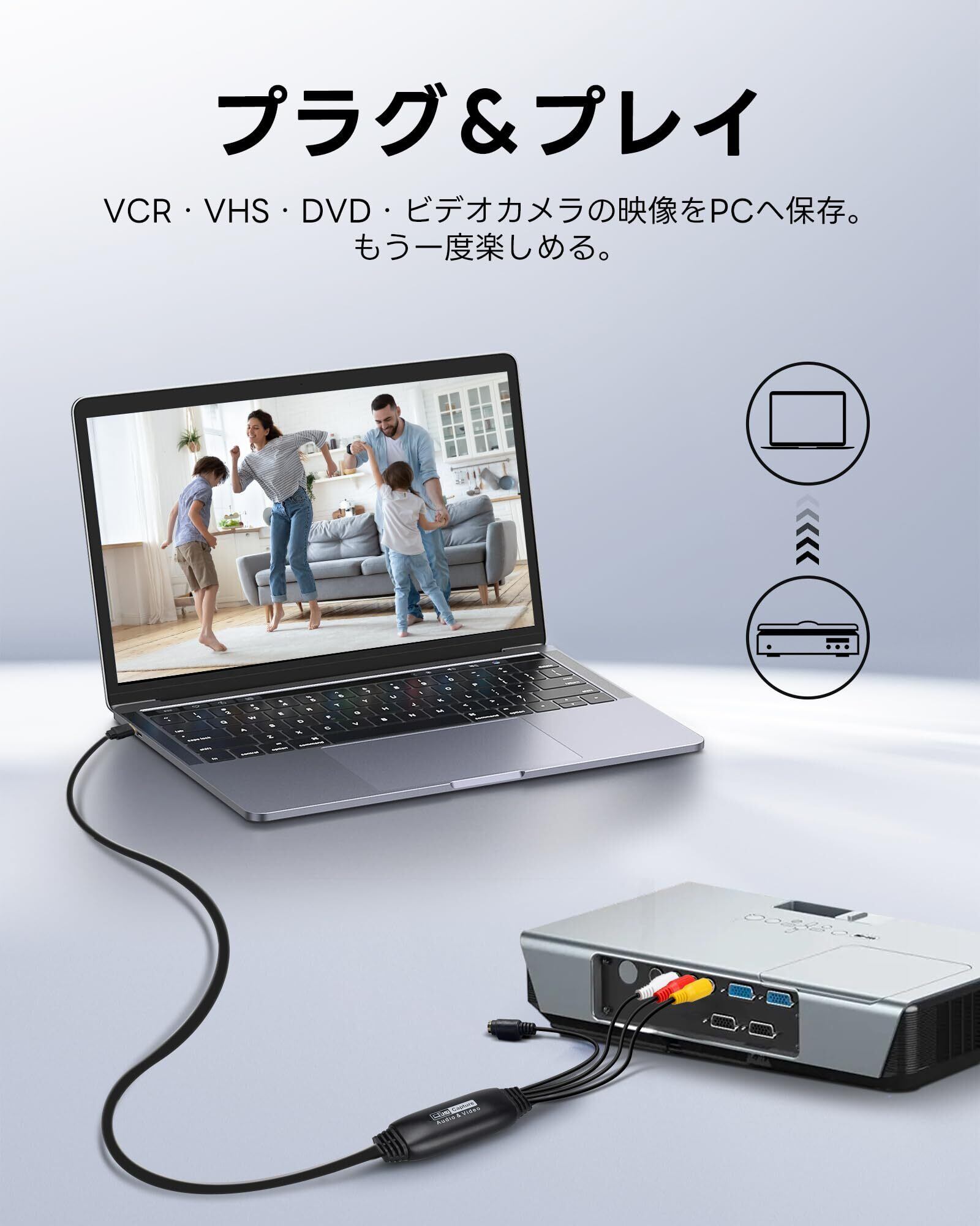【VHS・8mm映像を手軽にデジタル化】 昔のVHSテープや8mmビデオカメラの映像を、USBキャプチャーでパソコンに取り込み、簡単にデジタル保存できます。画質の劣化を気にせず、いつでも思い出の映像を楽しめます。取り込んだ映像はDVDに書き出して家族で観ることも可能です。