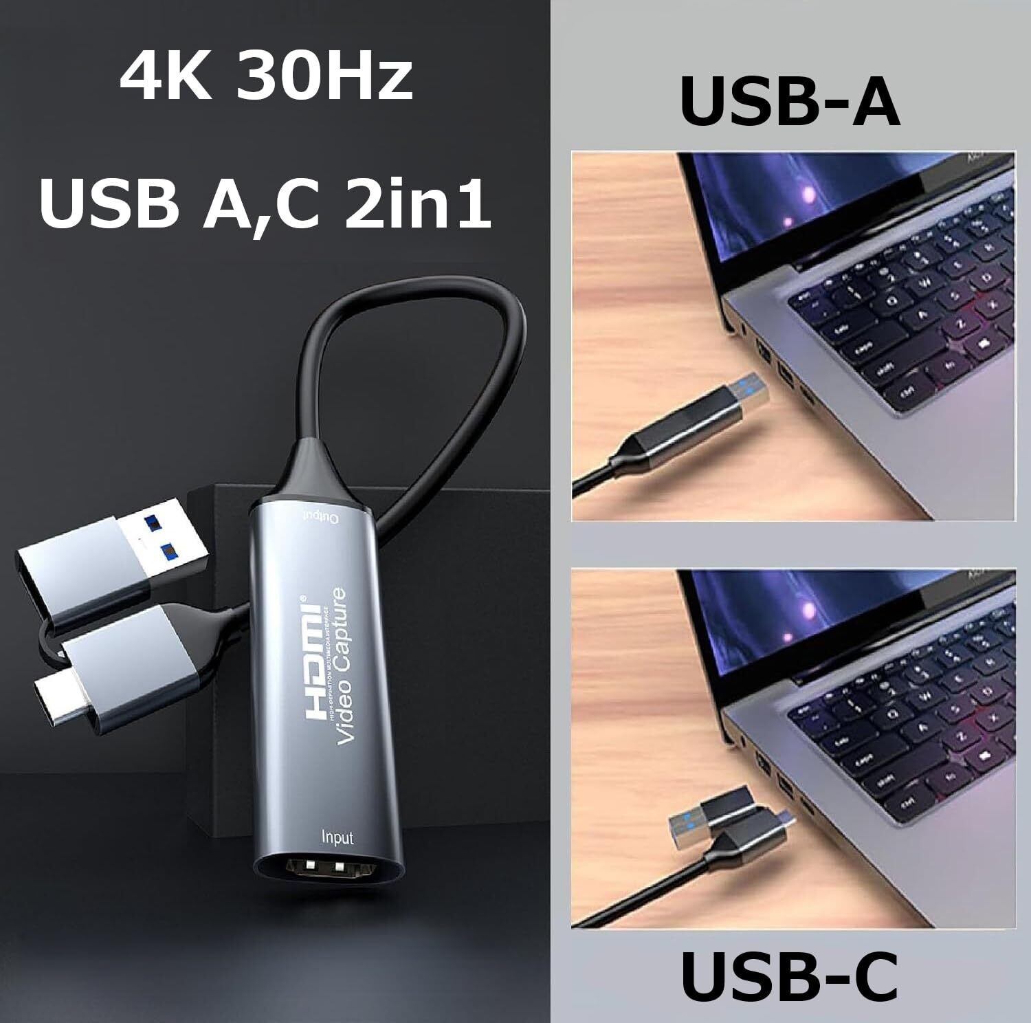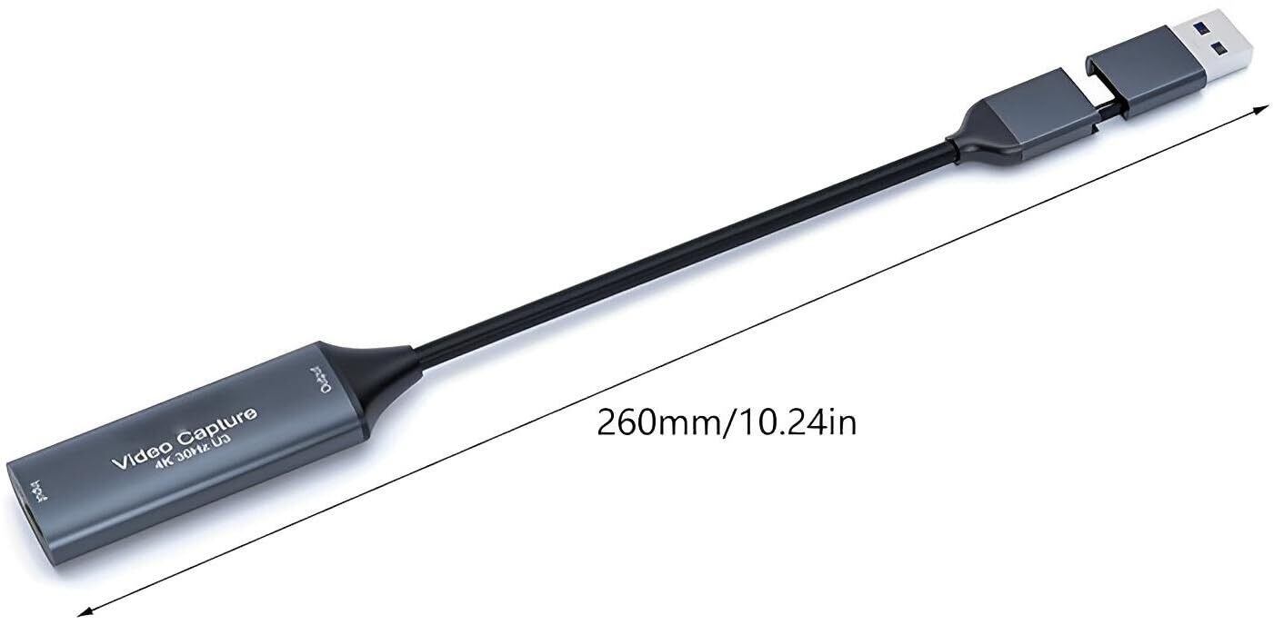 HDMI ビデオゲームキャプチャーボードユニット ポータブル 録画 ライブ配信 テレワーク 電源不要 持ち運びに便利 (USB3.0 TYPE-A+TYPE-C 入力4K 出力1080p ケーブル)