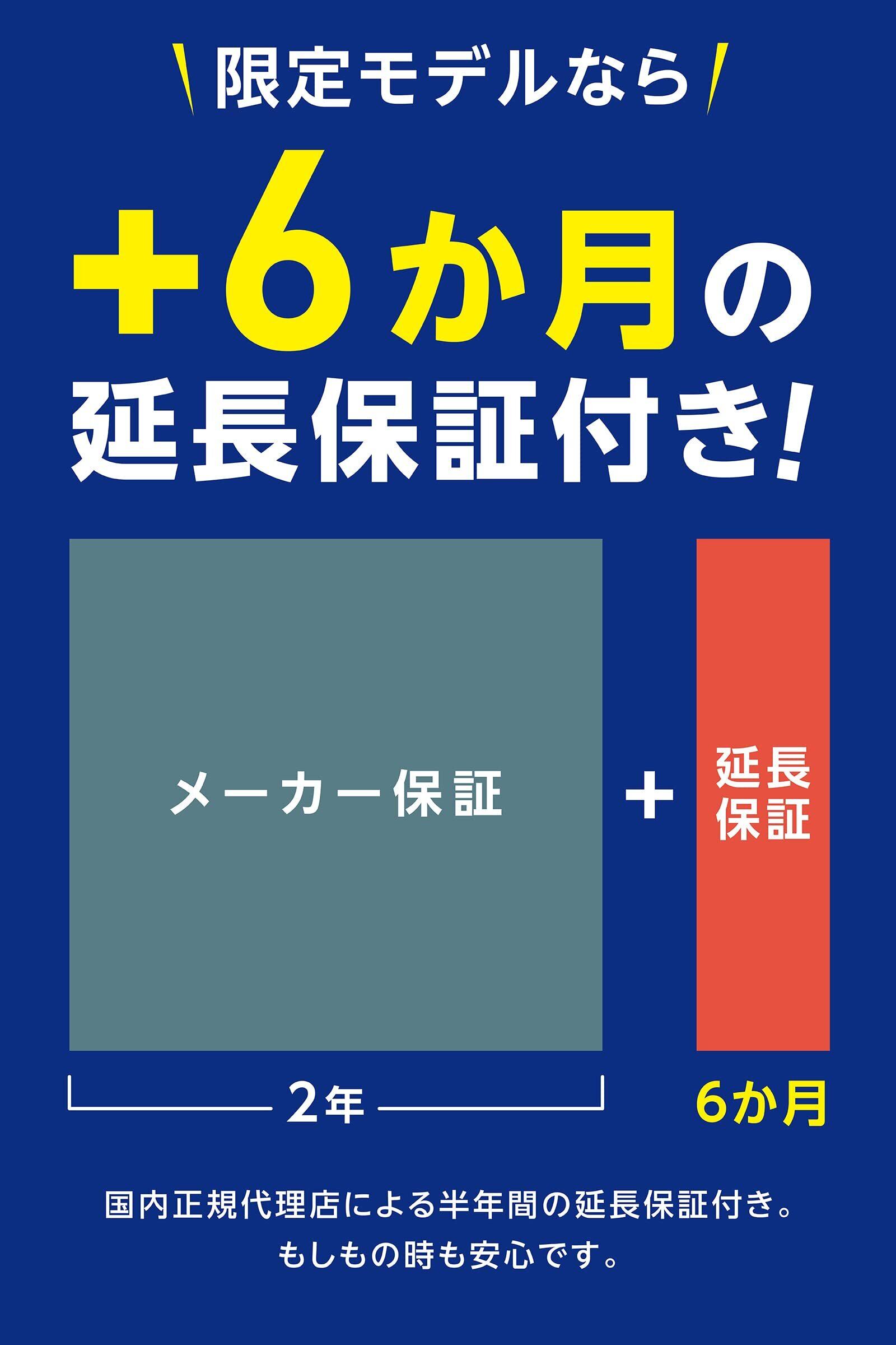 【6ヵ月延長で購入後も安心】 メーカー2年+限定延長6ヵ月となります。 規定に従った状態で期間内に故障した場合、無償修理またはお取り替えいたします。詳細は製品外箱添付の書をご確認ください。