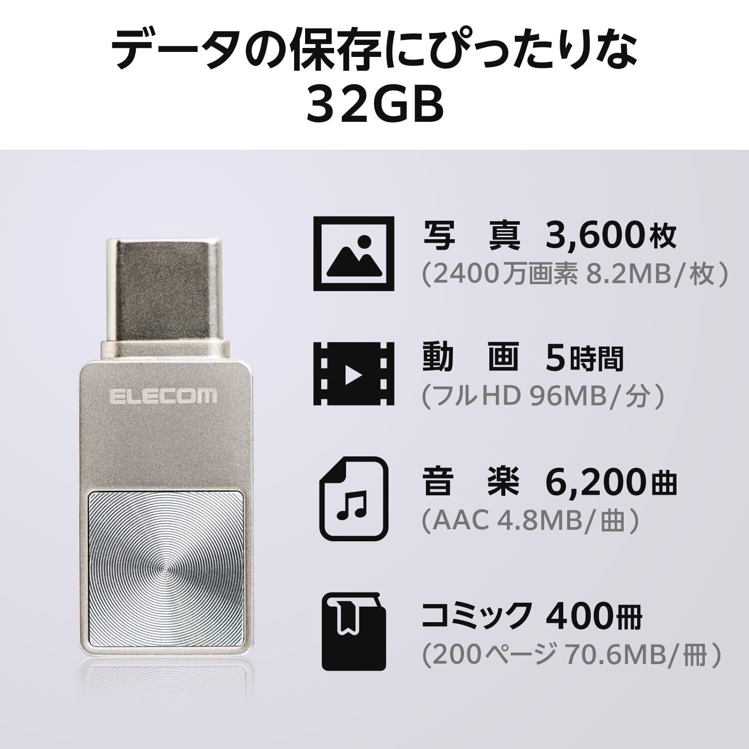 「32GBの容量は、写真や動画、ドキュメントなど、日常の様々なデータをしっかりと保存できます。容量不足に悩むこともなく、快適なデータ管理を実現します。」