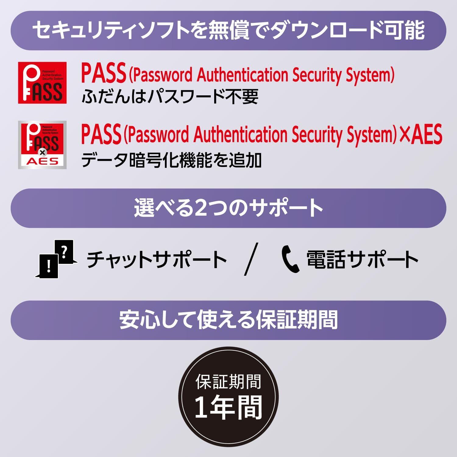 ■セキュリティ機能:PASS(Password Authentication Security System) [パスワード自動認証機能付セキュリティソフト]あるいはPASS(Password Authentication Security System)×AES [パスワード自動認証機能付暗号化セキュリティソフト]