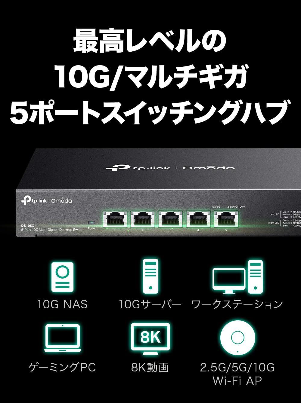 **\新登場!/ TP-Link 5ポート 全ポート10G対応 10G マルチギガビット アンマネージ プラグ&プレイ Omada対応 スイッチングハブ DS105X - 高速ネットワークを実現する最適アイテム!**