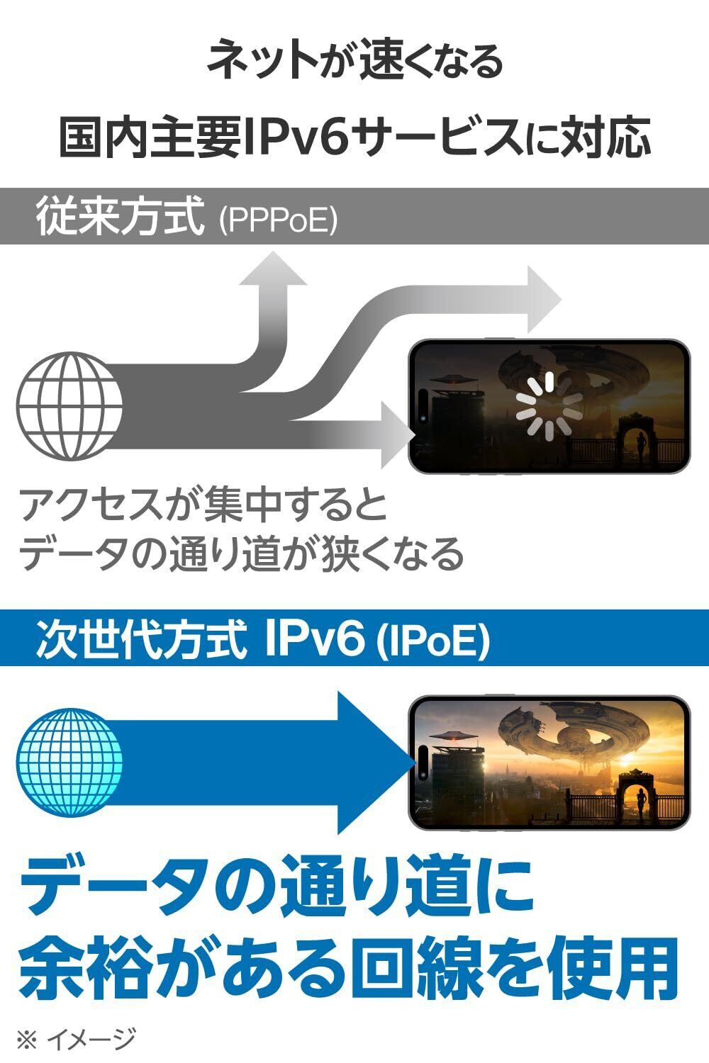 IPv6 IPoEインターネット接続であれば、インターネットポートにLANケーブルを接続するだけですぐにインタ―ネットが使えます。