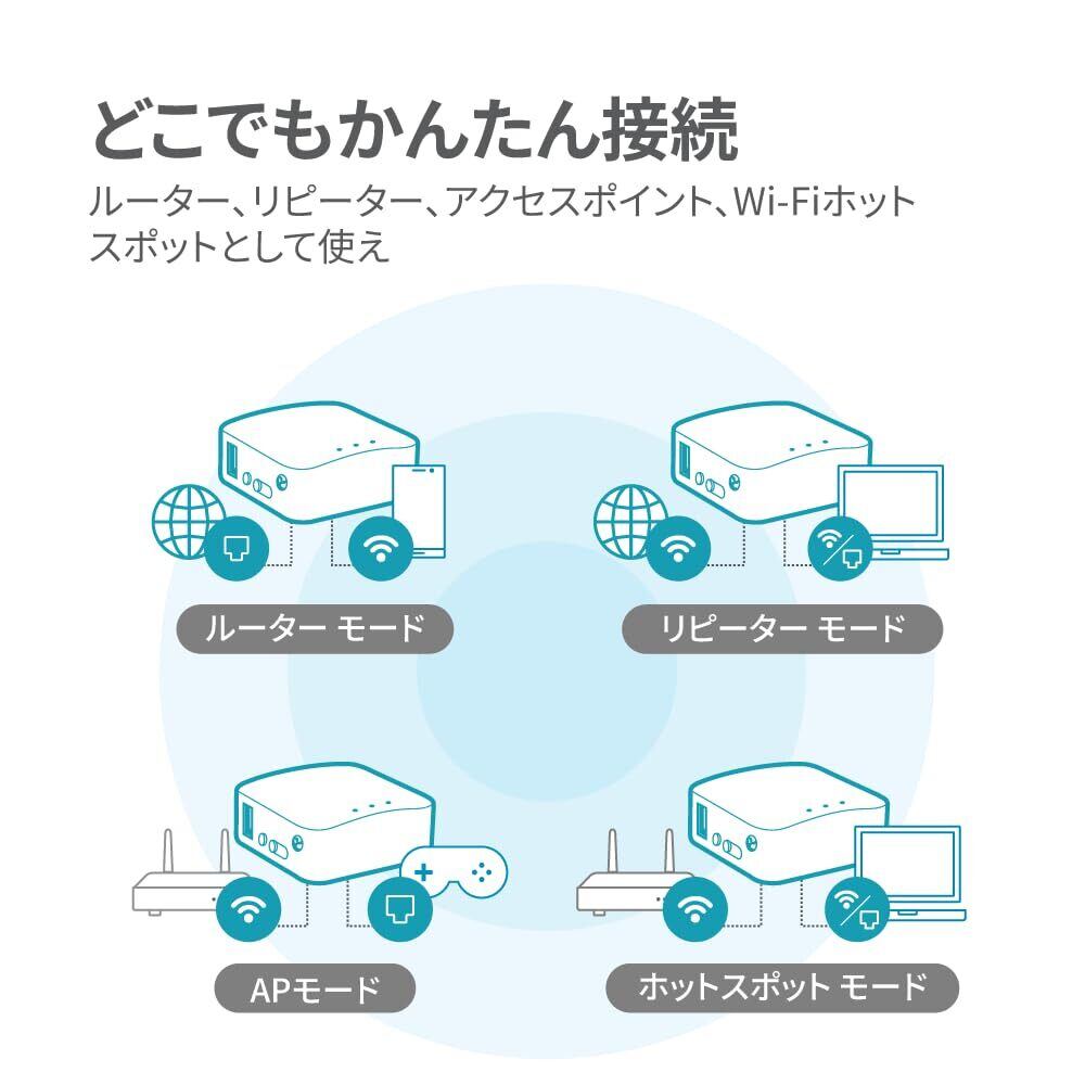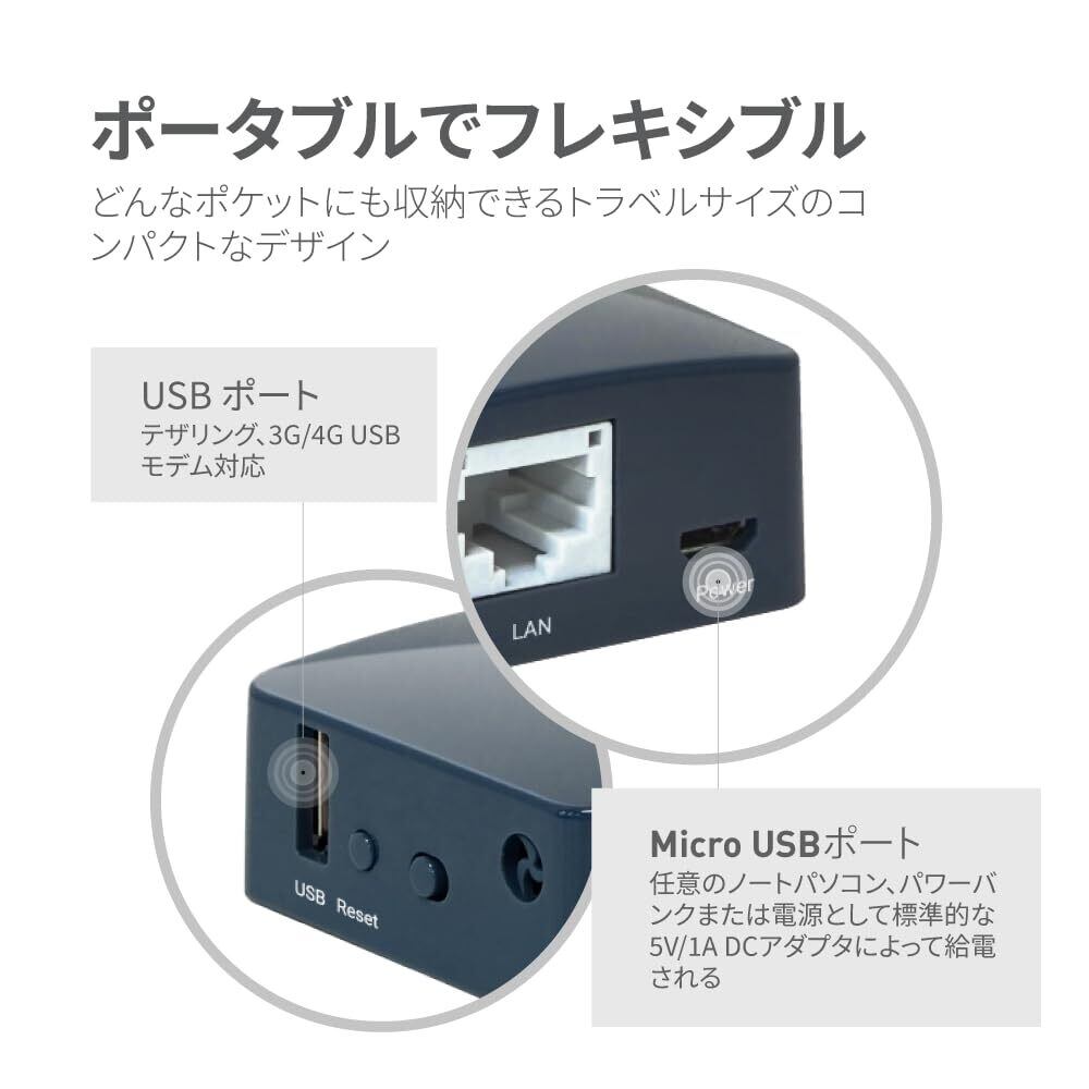 「内蔵アンテナを持つこのルーターは、軽量かつコンパクトなデザインで、持ち運びにも最適です。旅行先や出張先でも、手軽にWi-Fi環境を整えることができます!」
