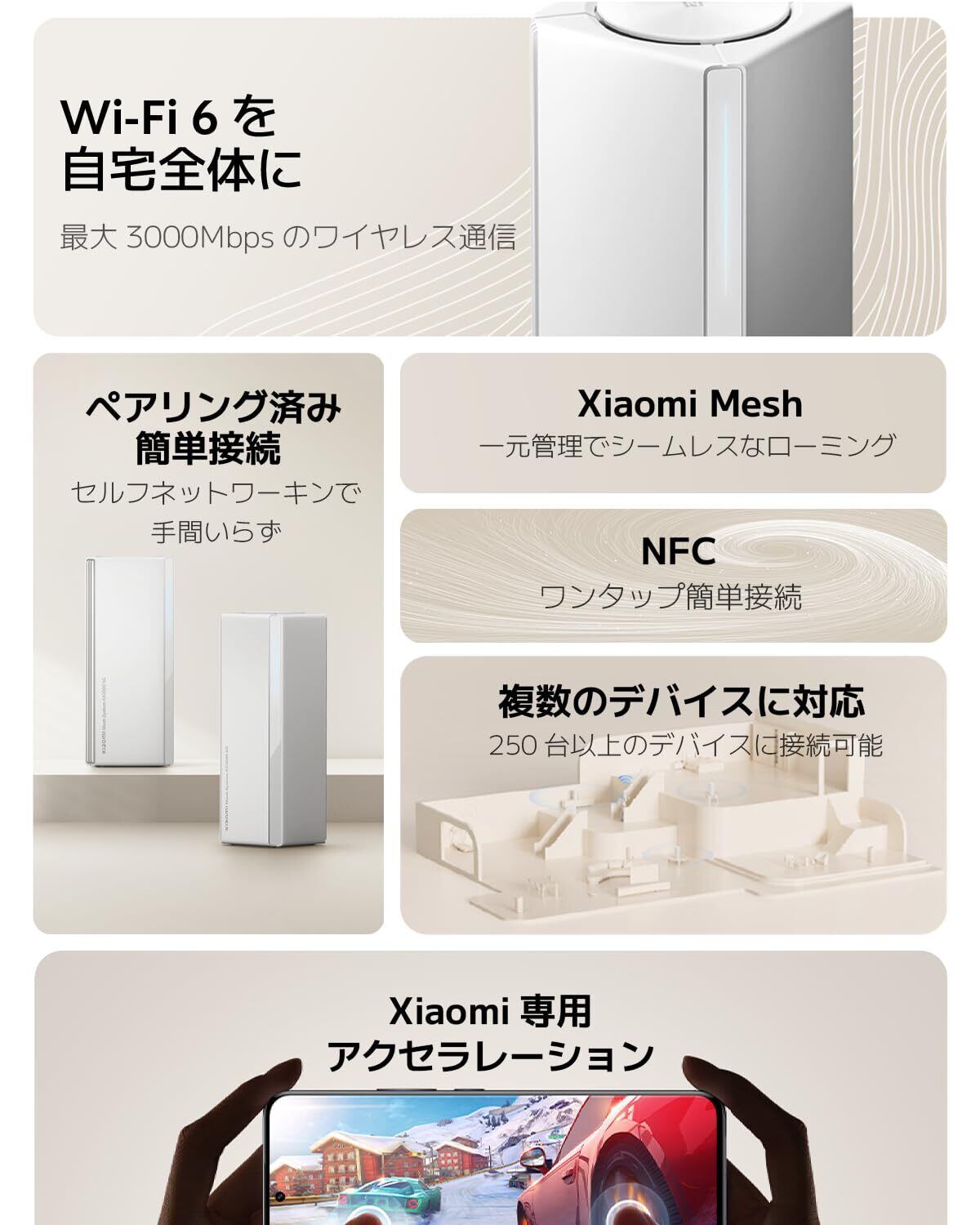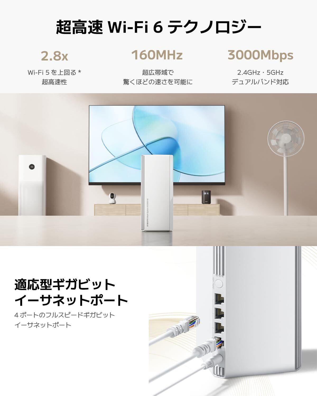シャオミ(Xiaomi) WiFi 無線LANルーター WiFi ルーター AX3000 NE Wi-Fi 6 デュアルバンド 最大3000Mbps メッシュWi-Fiシステム wifi中継 1ユニット
