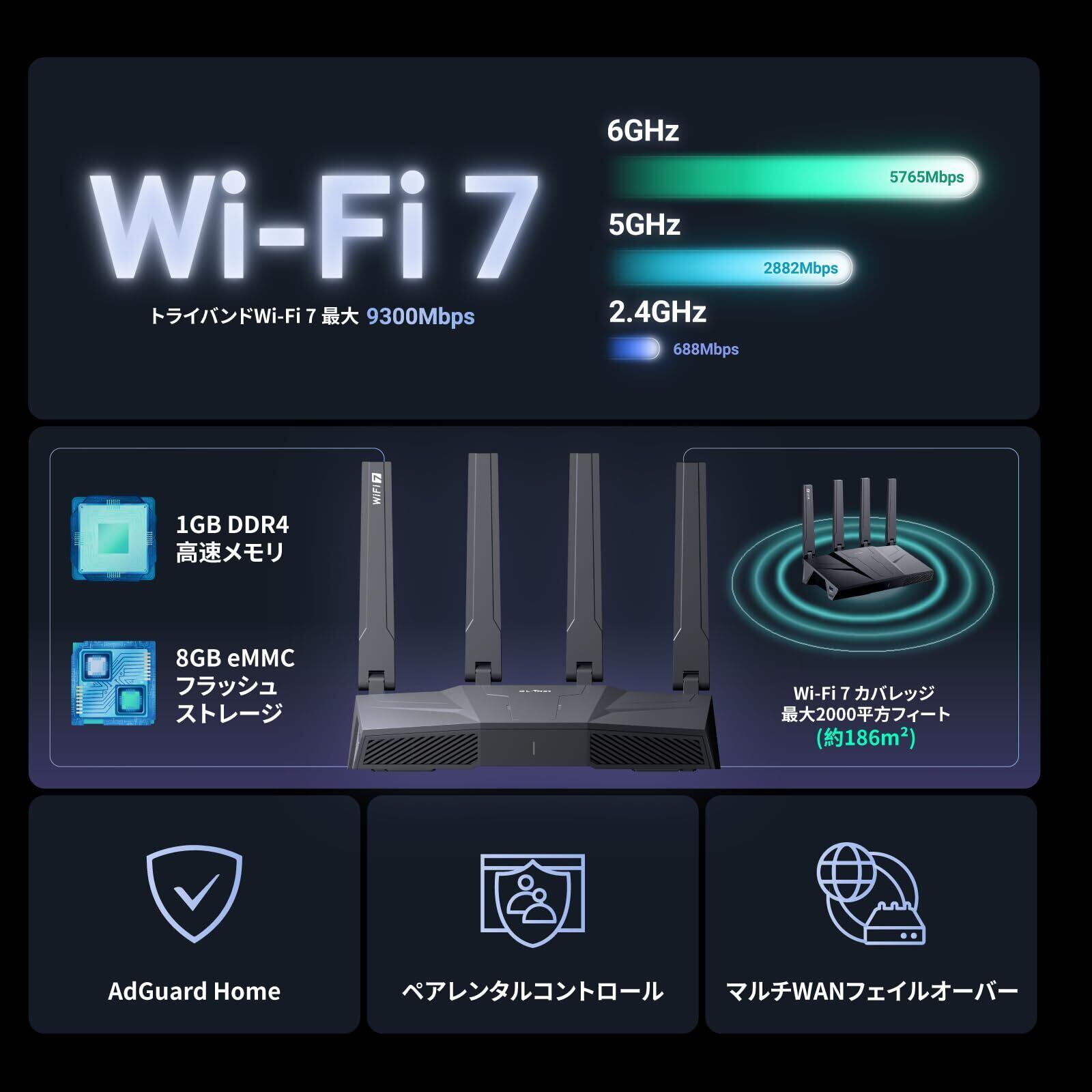 - 最大5400MbpsのトライバンドWi-Fi 7ルーター!