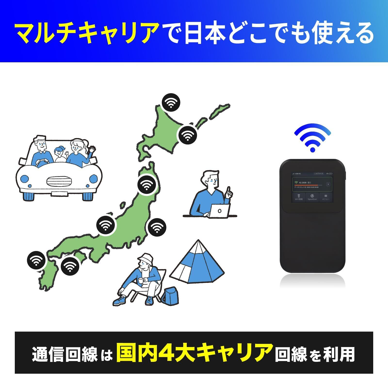 【通信回線は日本4大キャリア】国内4大キャリア内の最適な電波を自動でキャッチ。マルチキャリアで広範囲エリアをカバー。