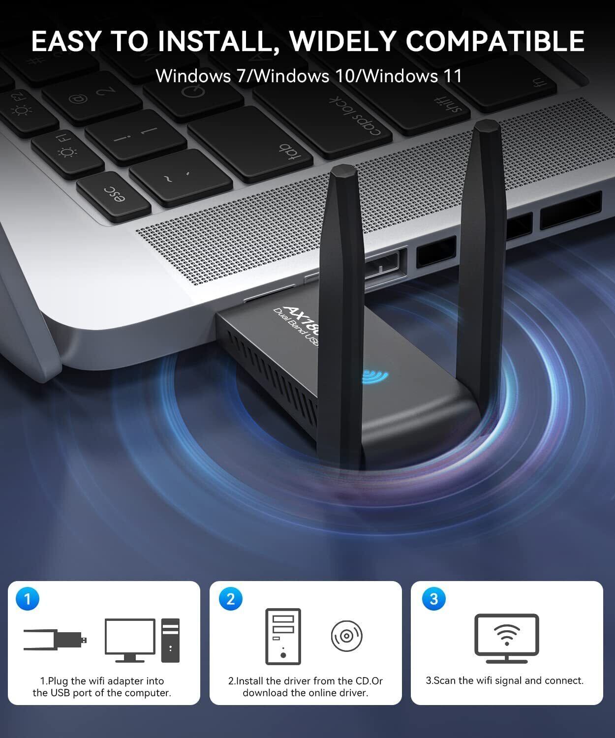 豊富な互換性。Windows 11/10/7、規格IEEE 802.11 ax/ac/a/b/g/nのためのUSB WiFi 6アダプタサポート(Linux Macシステムのために推奨されていない)。
