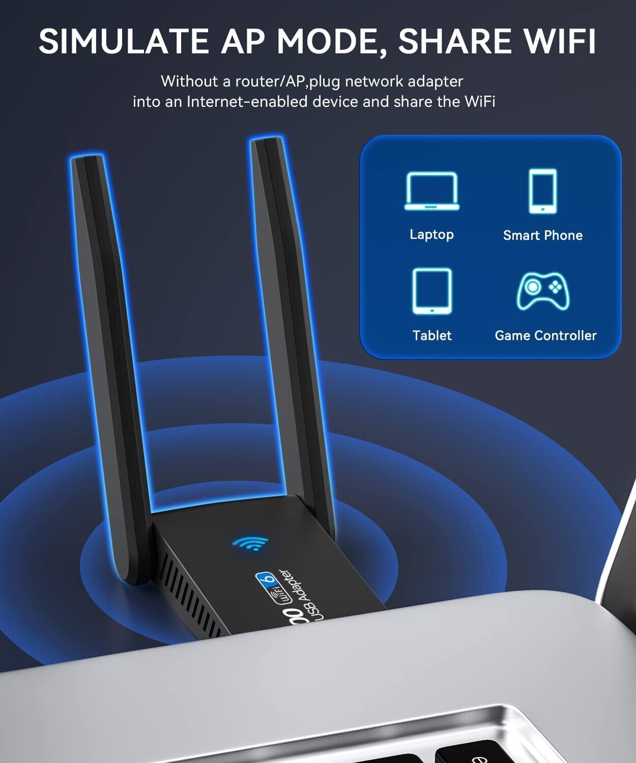 強力なアンテナ:高ゲインのデュアルアンテナは、優れた信号受信および送信能力、柔軟な接続性と優れた範囲を提供し、折り畳み式で持ち運びが容易なため、コンピュータがWi-Fiホットスポットを作成し、他のデバイスと驚くべき速度を共有するのに役立ちます。
