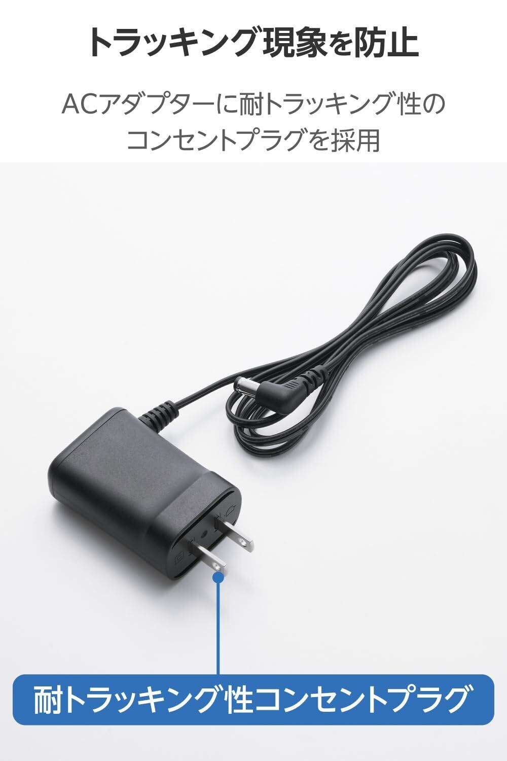 ■ACアダプターに耐トラッキング性のコンセントプラグを採用。長期間設置した場合でも、トラッキング現象を防止します。