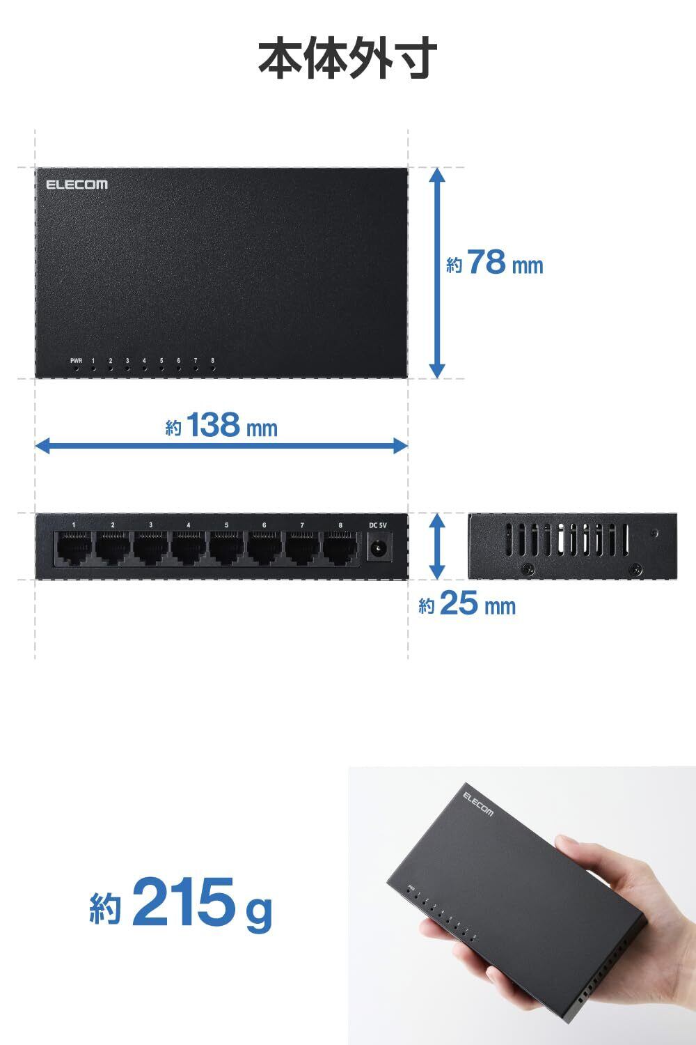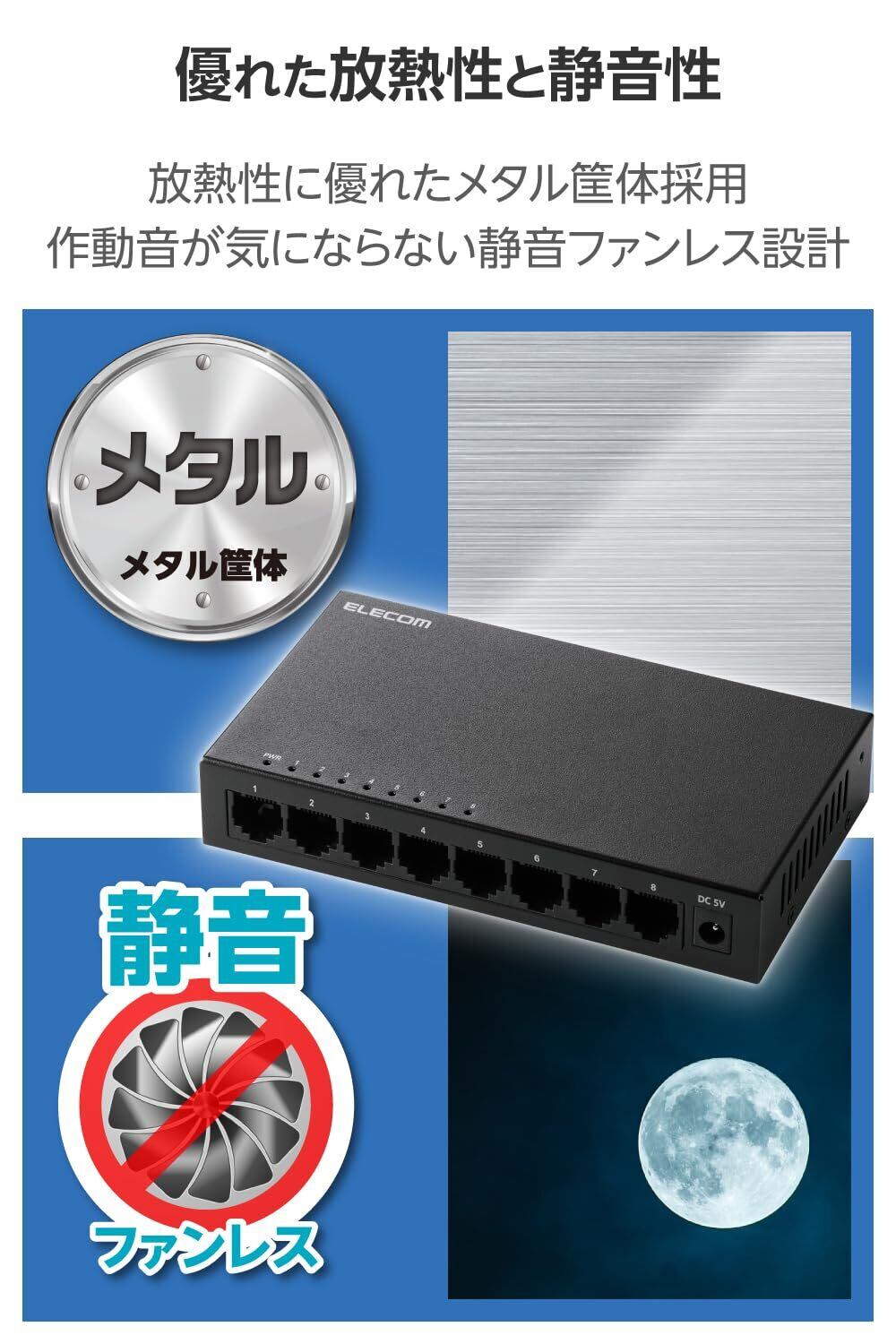 エレコム スイッチングハブ ギガビット 8ポート 金属筐体 AC電源 静音ファンレス ブラック EHC-LG08M-B