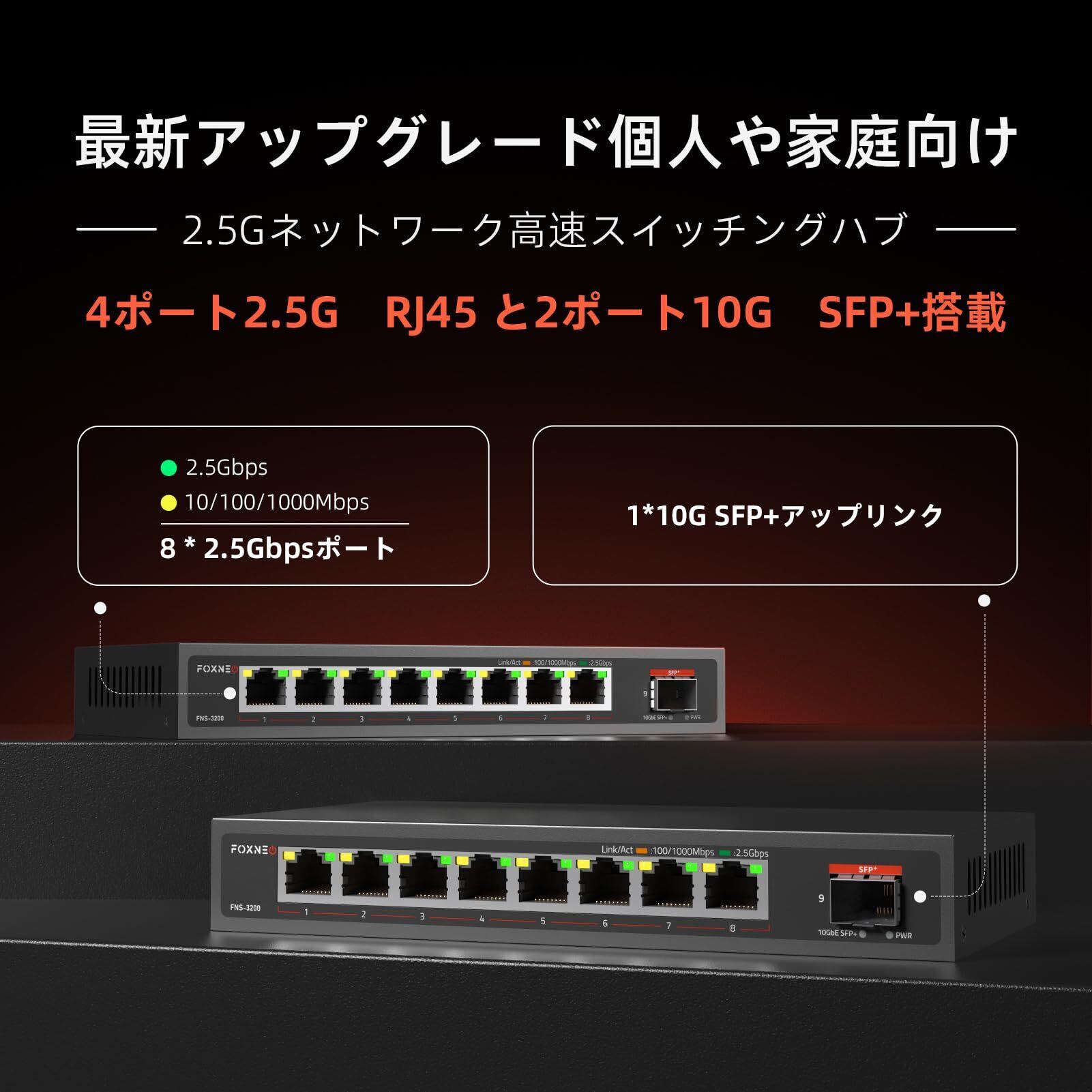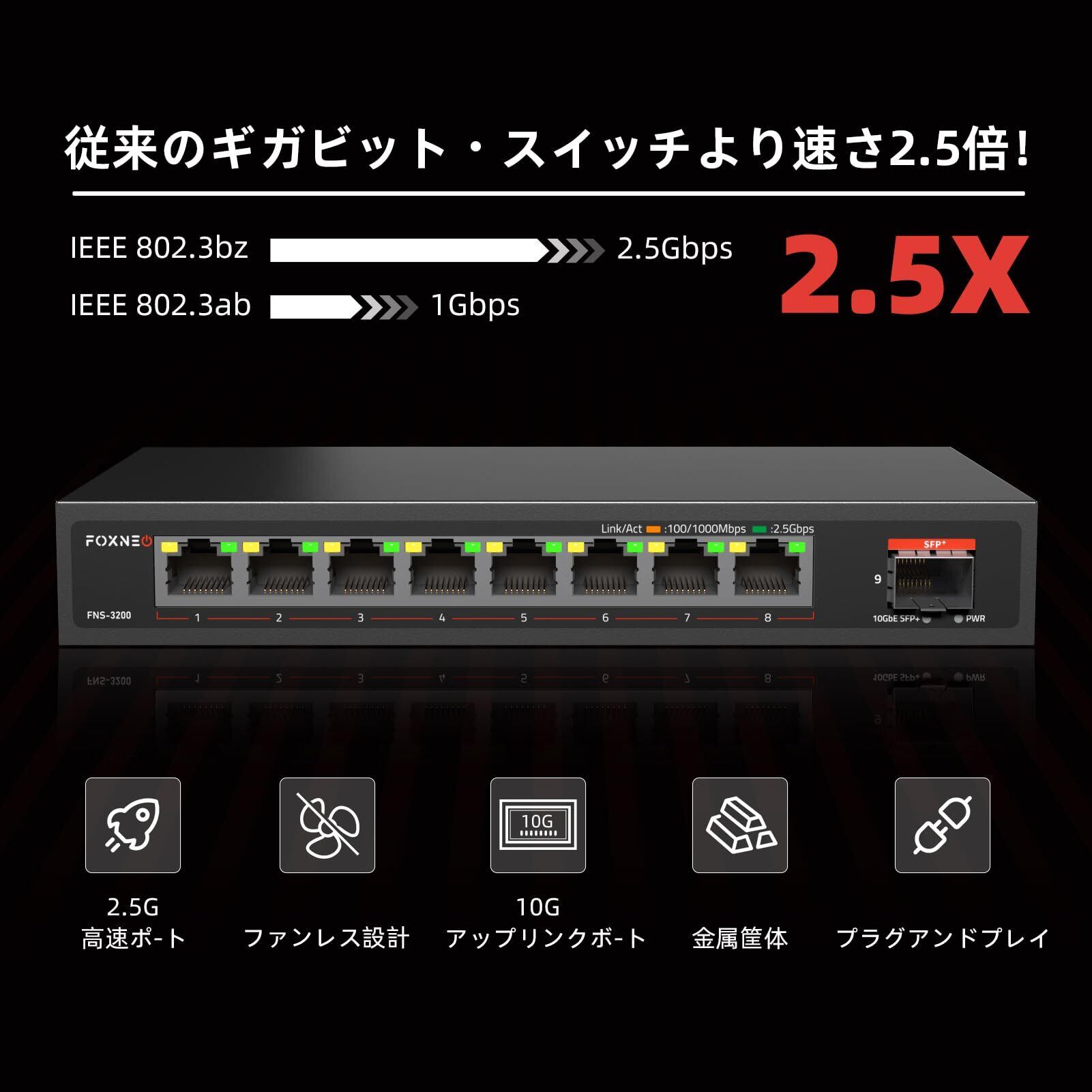 2.5gbps スイッチングハブ 9ポート(8x2.5G RJ45と1x10G SFP+)搭載、個人や家庭向けのスイッチングハブ 静音ファンレス設計 デスクトップや壁掛け設置可能 金属筐体 プラグアンドプレイ アンマネージド スイッチングハブ