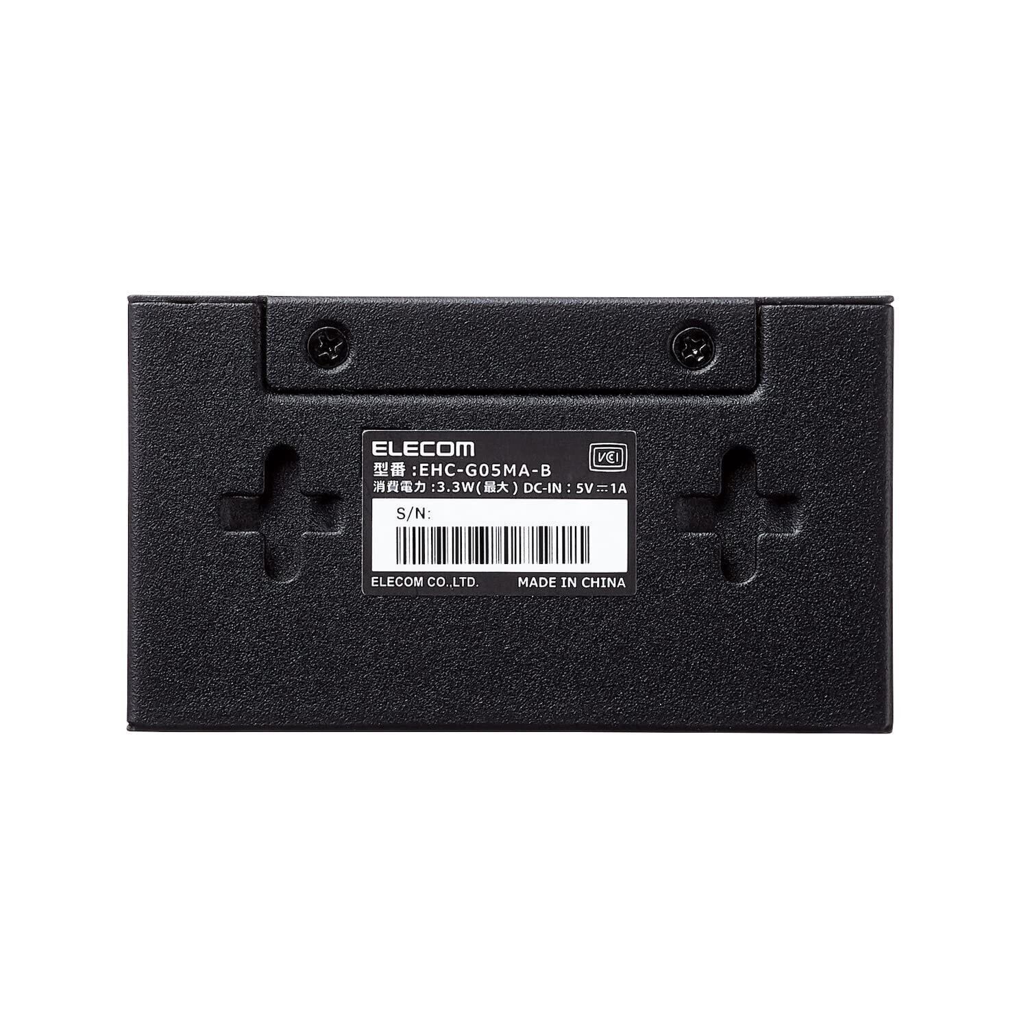 エレコム スイッチングハブ 5ポート ギガビット 金属筐体 コンパクト 軽量 [ACアダプター付属/壁掛け設置対応/静音ファンレス/省電力/EU RoHS指令準拠] ブラック EHC-G05MA-B
