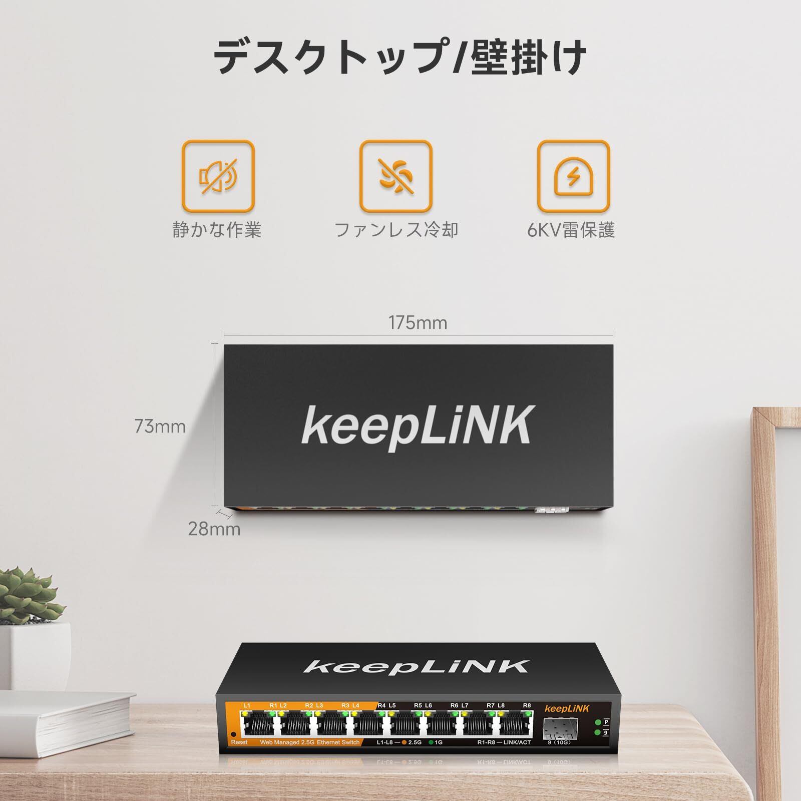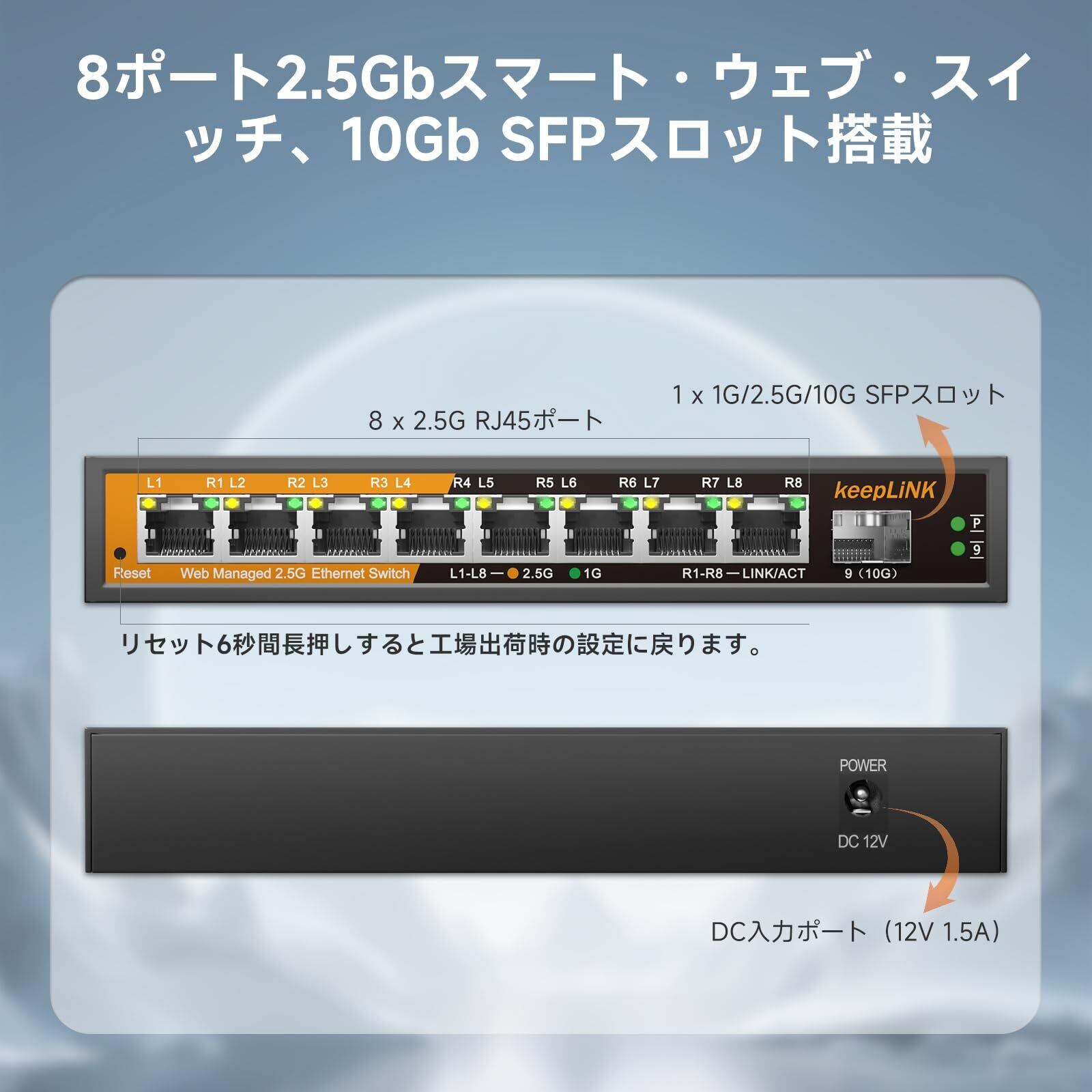 8ポート 2.5G ハブ スマート 1つの10GbE SFP+ポート ウェブ管理コンソール付き 金属筐体 壁掛け 静音ファンレス
