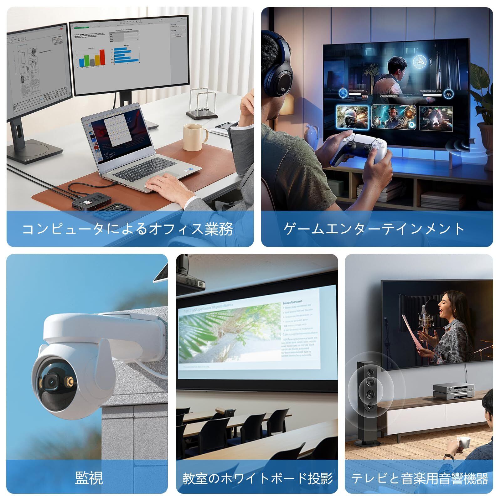 「1入力2出力の設計により、複数のデバイス(ノートパソコン、ゲーム機、プリンターなど)を同時に接続可能です。特にデータ通信が頻繁に行われる場面で、全体的なパフォーマンスを向上させる効果があります。」