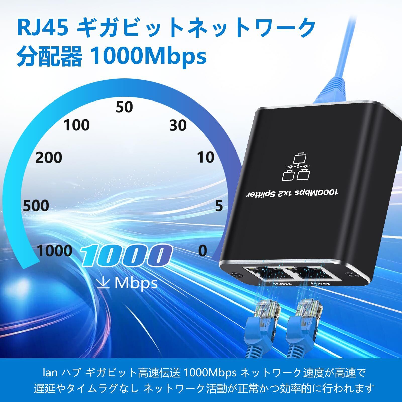 「『Aideepen LAN ハブ LAN分配器 3ポート』は、1つの入力端子から2つの出力端子へと信号を分岐する高性能スイッチングハブです。RJ45ポート×3を装備し、最大1000Mbpsの高速通信を実現することで、自宅やオフィスのネットワーク環境を効率的に拡張します。Cat8/Cat7/Cat6対応のため、様々なデバイスと高い互換性を誇ります。」