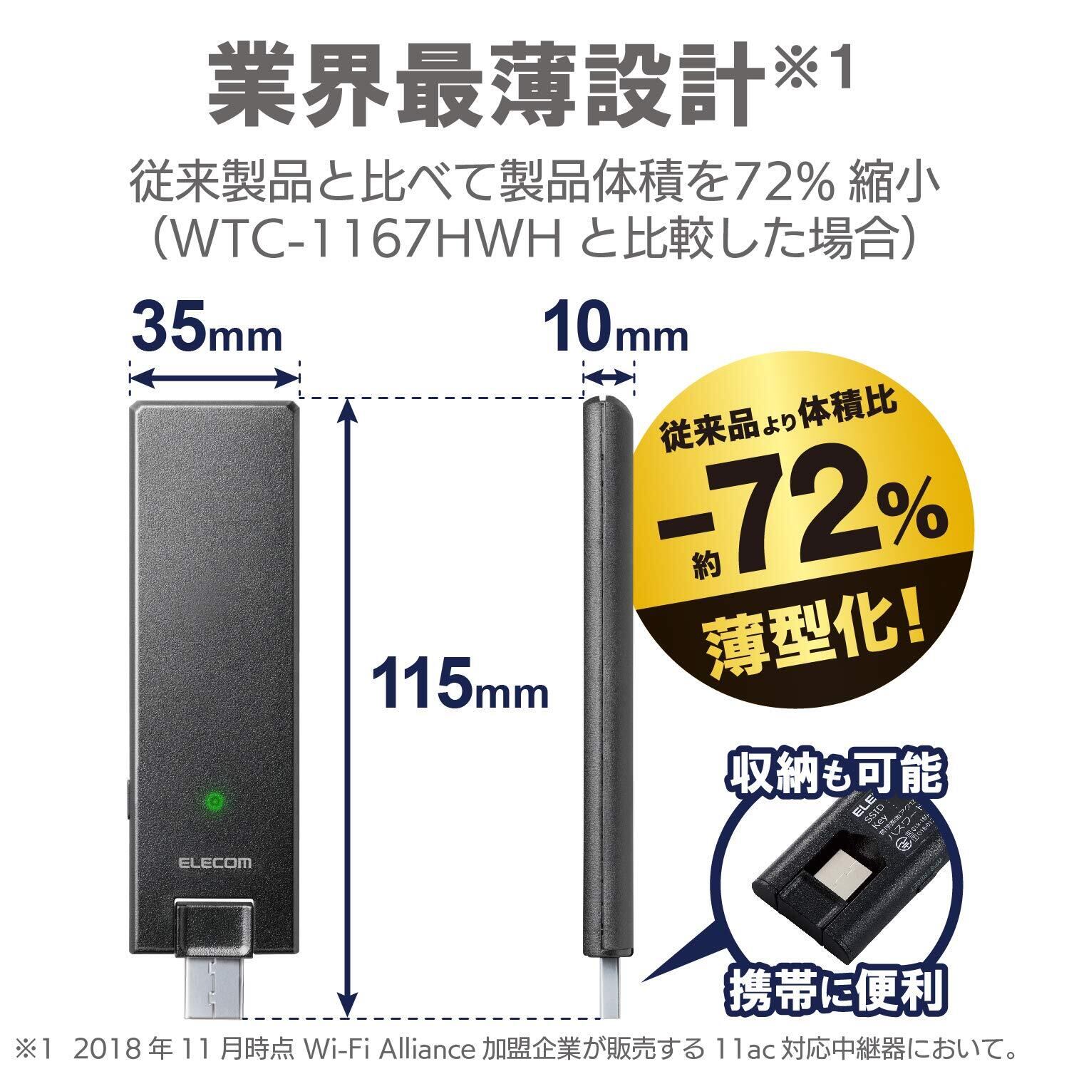 エレコム WiFi 無線LAN 中継器 11ac/n/a/g/b ac1200 867+300Mbps ブラック 小型モデル デュアルバンド WTC-1167US-B
