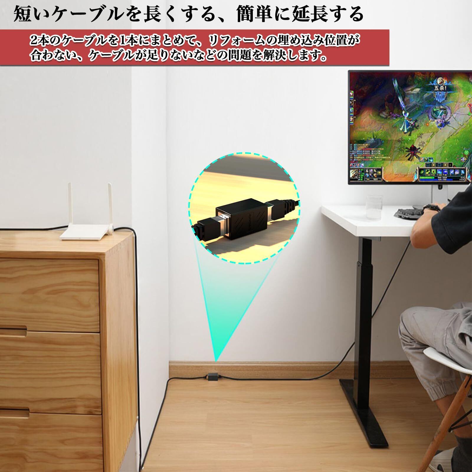 「本製品はユーザーフレンドリーな設計で、特別な工具や専門的な知識がなくても簡単に取り付け可能です。LANケーブルの延長作業を迅速に行い、手間なく快適なネットワーク環境を構築できます。」