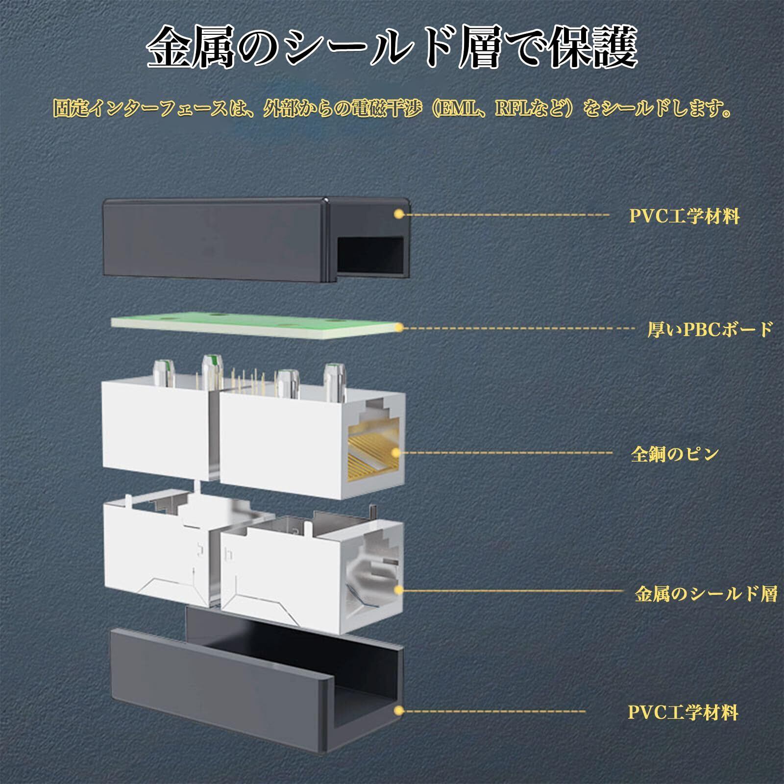【高速データ伝送】当商品は最新のテクノロジーを搭載しており、10ギガビットの超高速データ伝送を実現します。lanケーブル延長や接続によって、LANネットワークのパフォーマンス向上を図ります。