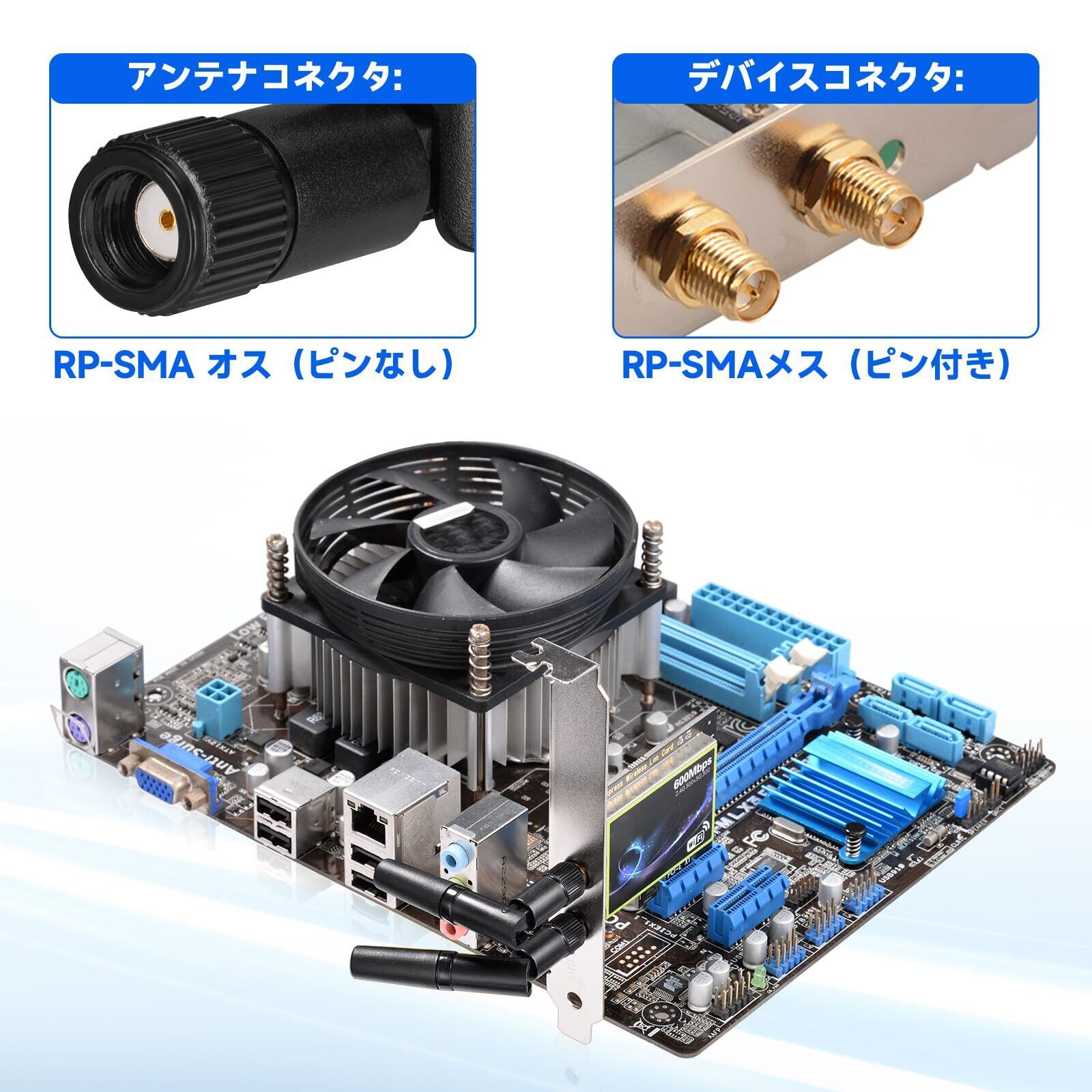 「本製品はRP-SMAコネクタを採用しており、手間いらずで簡単に取り付けることができます。特別な工具や技術は不要で、すぐにお使いいただけるため、ストレスフリーなネットワーク設定を実現します。」