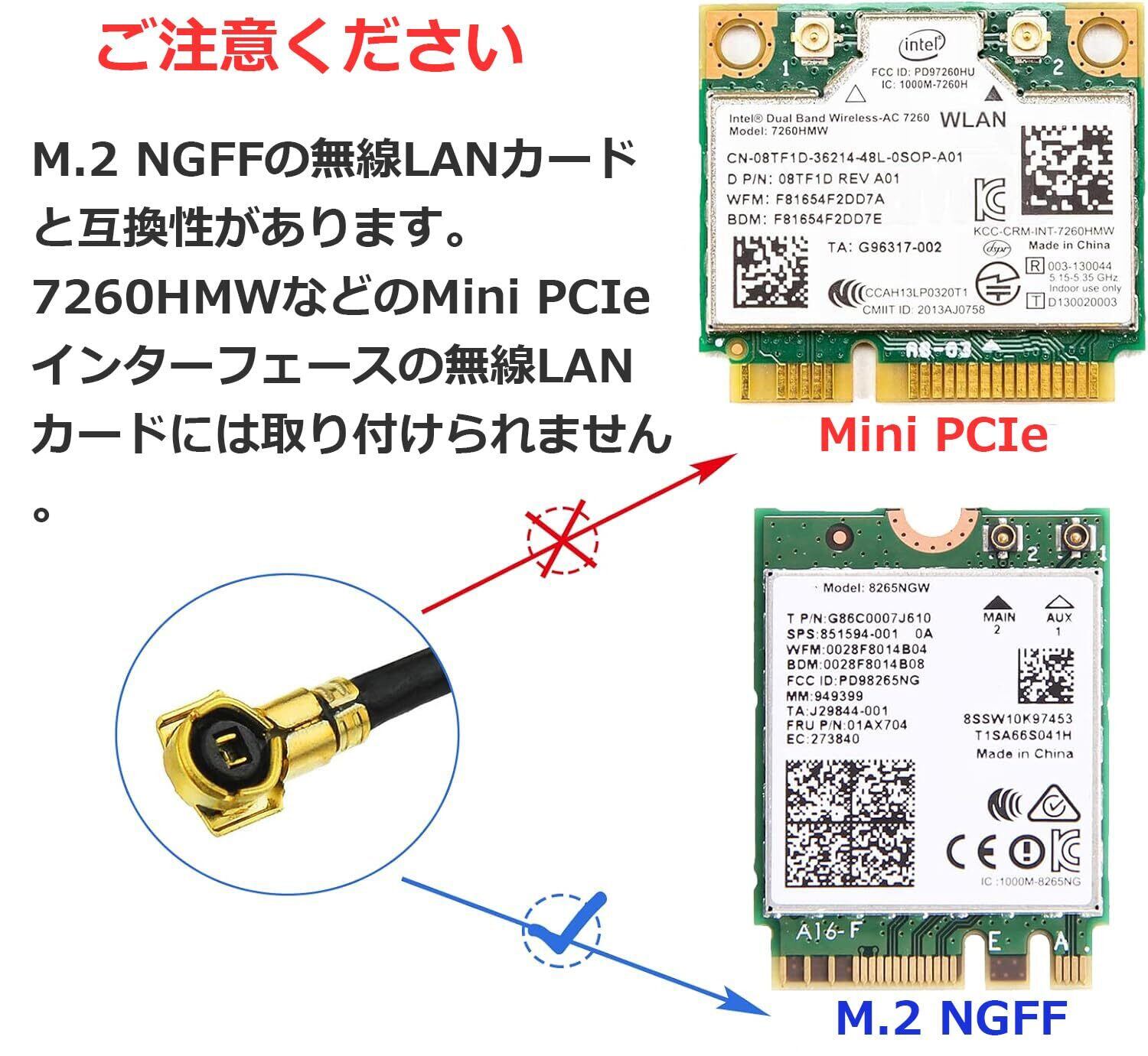 Intel 7260HMW などのMINI PCIeインターフェースの無線LANカードには取り付けられませんのでご注意ください。