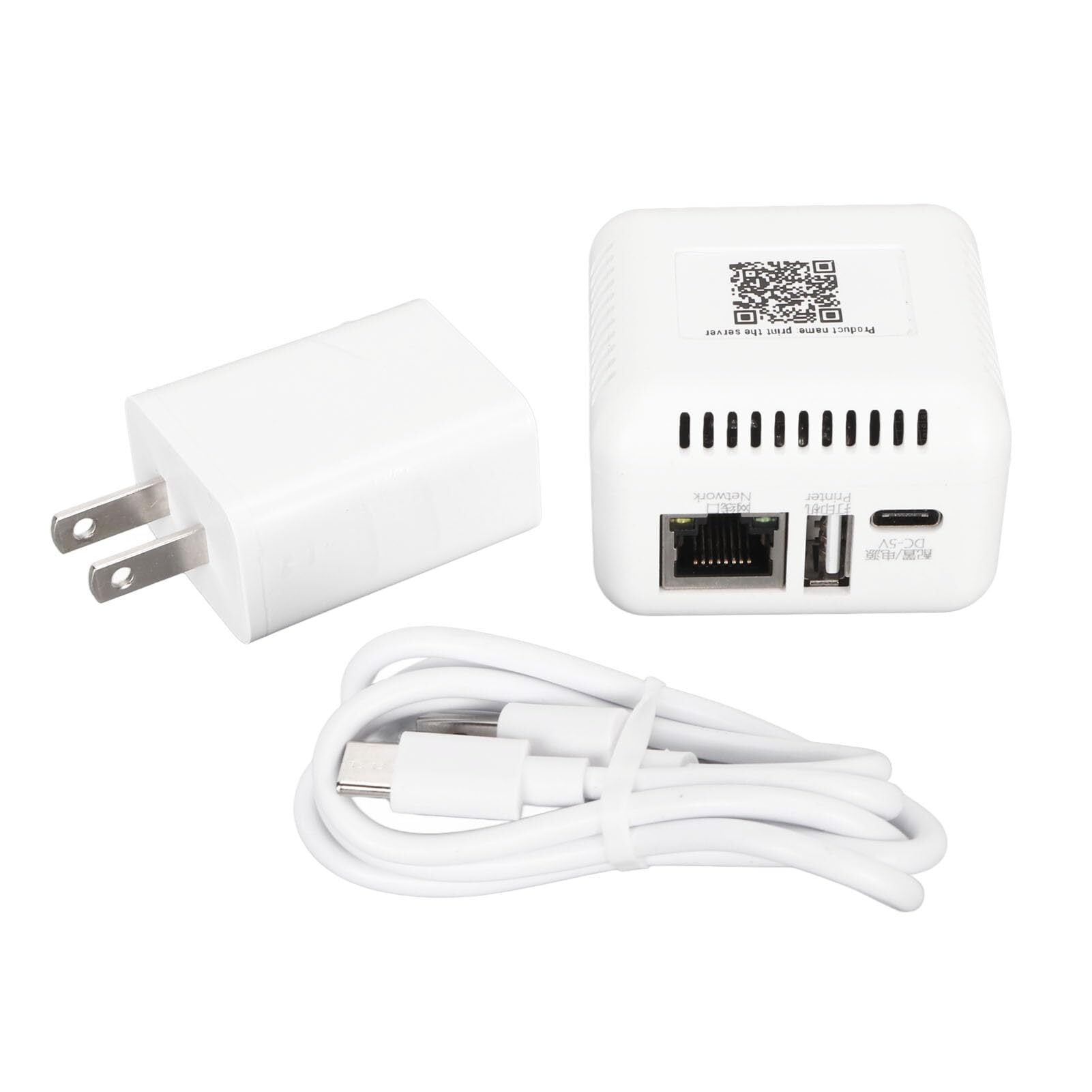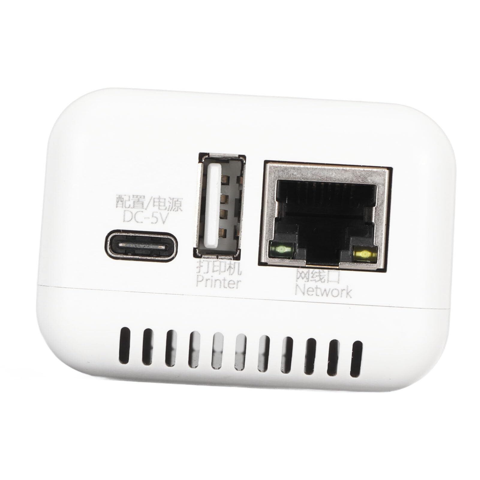 2.複数のインターフェイス: Type C 電源ポート、プリンター USB 接続ポート、ネットワーク ケーブル インターフェイスを備えたコンピューター プリント サーバー アダプター。