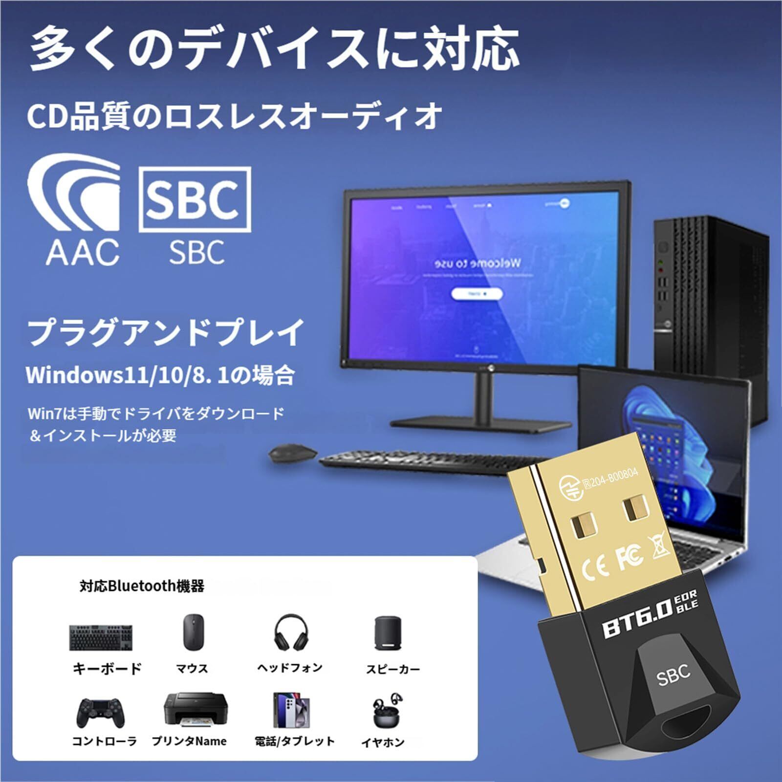 - 本製品はWindows、Mac、Linuxに対応していますが、特定の古いOSには非対応です。ご使用前に、対応OSをご確認いただくことをお勧めいたします。この『超小型 Bluetooth 6.0 USBアダプタ』で、便利で快適なワイヤレスライフを実現してください。