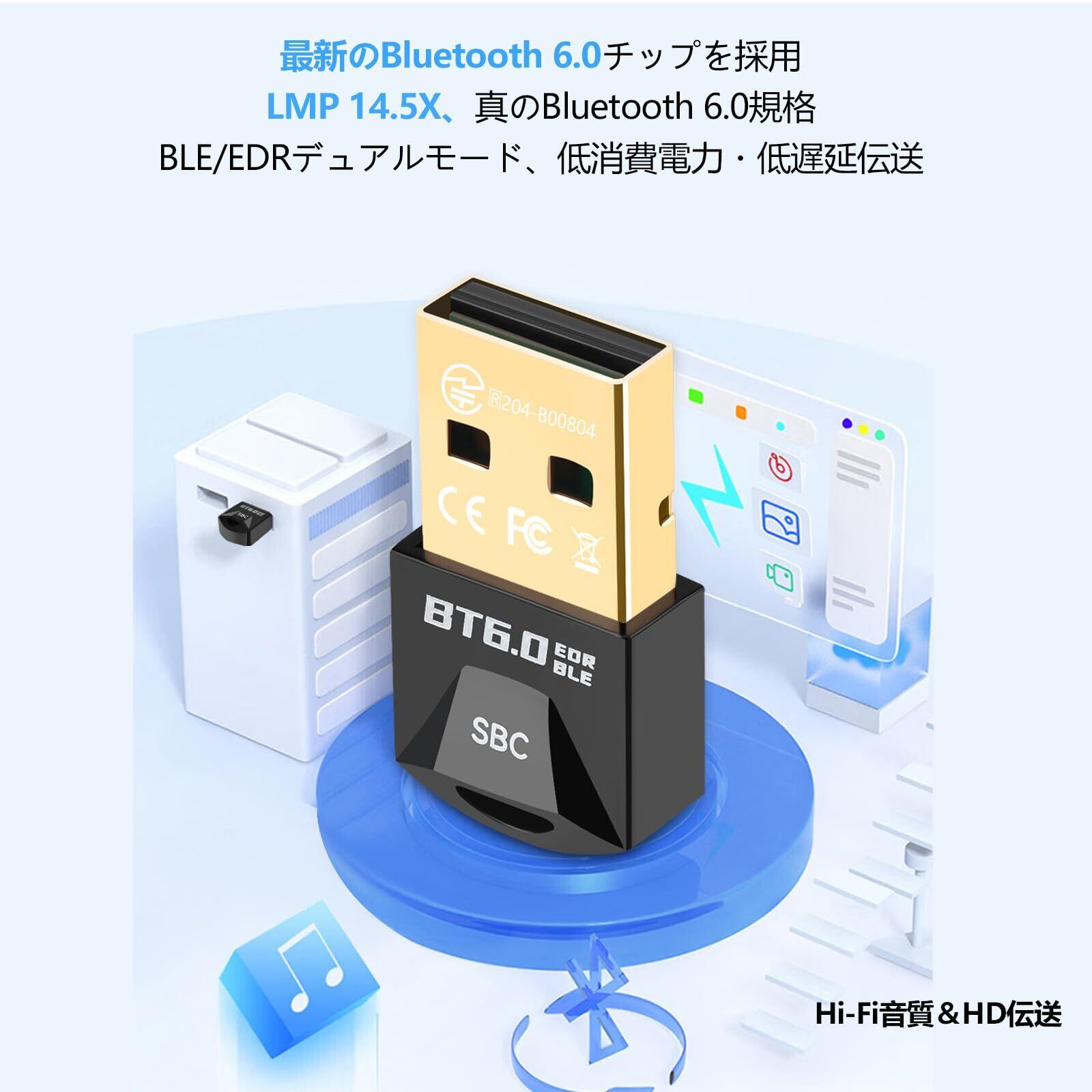 超小型 Bluetooth 6.0 USBアダプタ|高速・安定接続&省電力|PC/ノートPC/ゲーム機対応|ワイヤレスオーディオ&データ転送|プラグ&プレイ|Windows/Mac/Linux対応|コンパクト設計・持ち運び便利