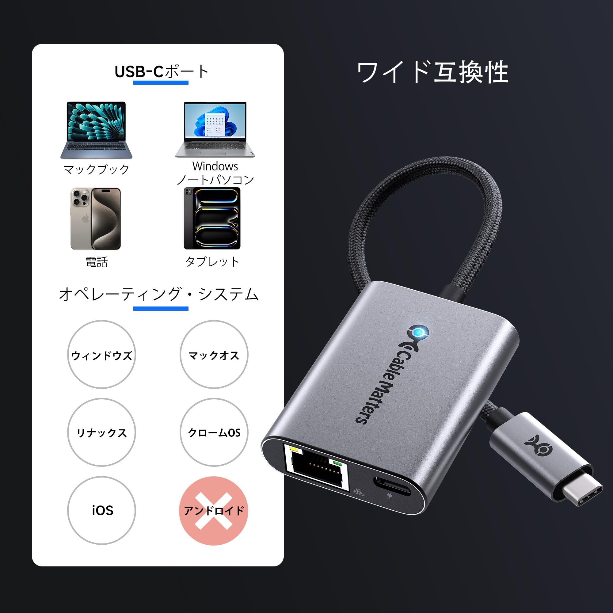 **\新登場!/ Cable Matters USB-C 2.5G 有線LANアダプター [2.5Gbps & 140W充電対応] 2-IN-1 USB-C LAN変換アダプター|快適なネットワークを手に入れよう!**