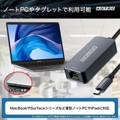 - USB-CからRJ45への簡単接続!