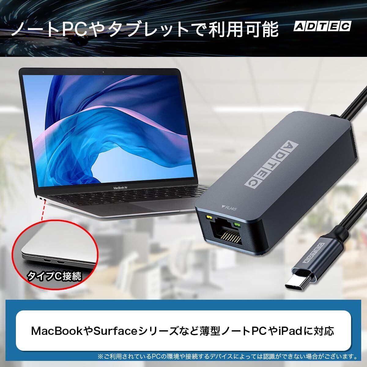 - 本製品はUSB-Cポートを搭載したデバイス専用です。快適なネットワーク体験を『アドテック 2.5Gbps Type-C to RJ45 高速イーサーネットアダプタ』でぜひお楽しみください。