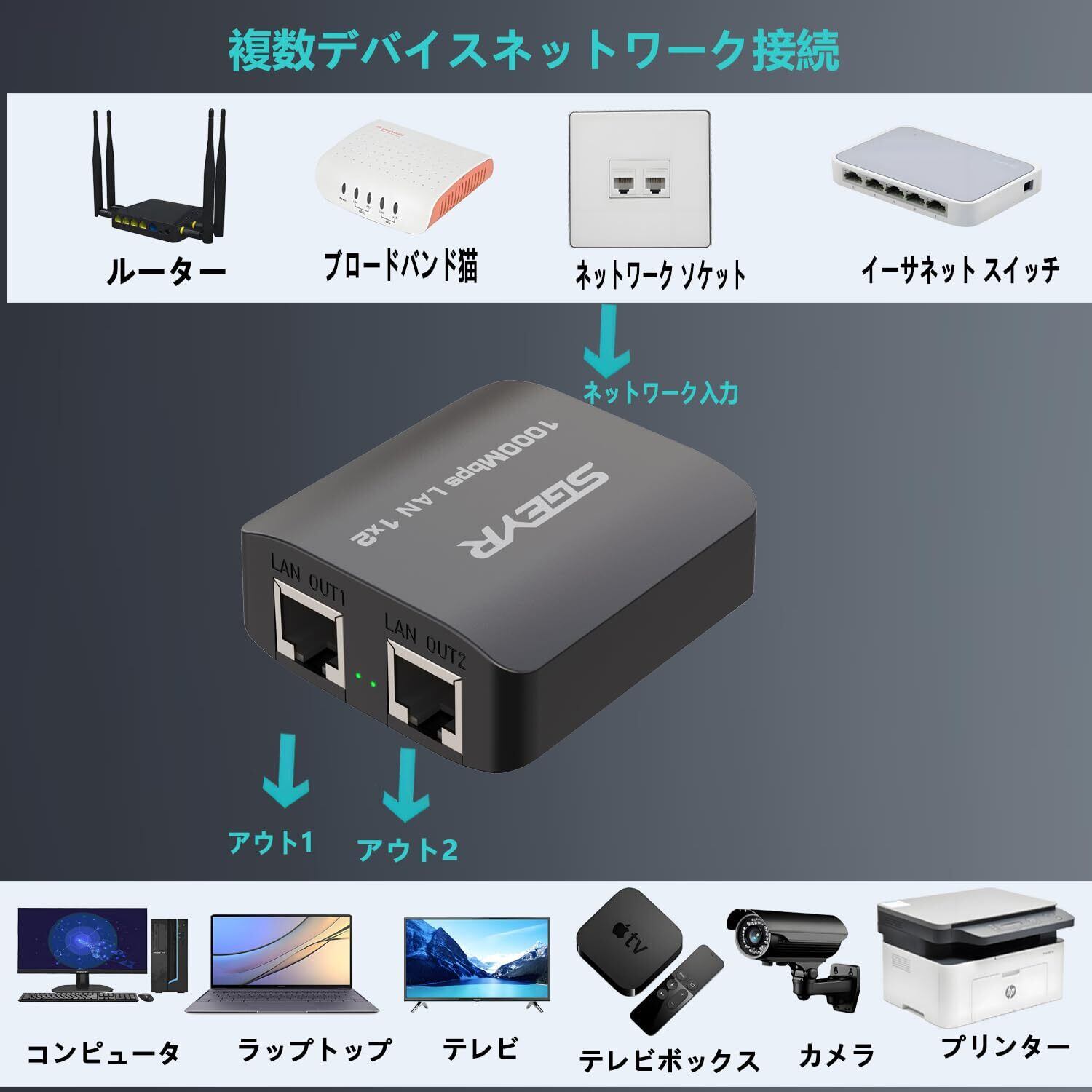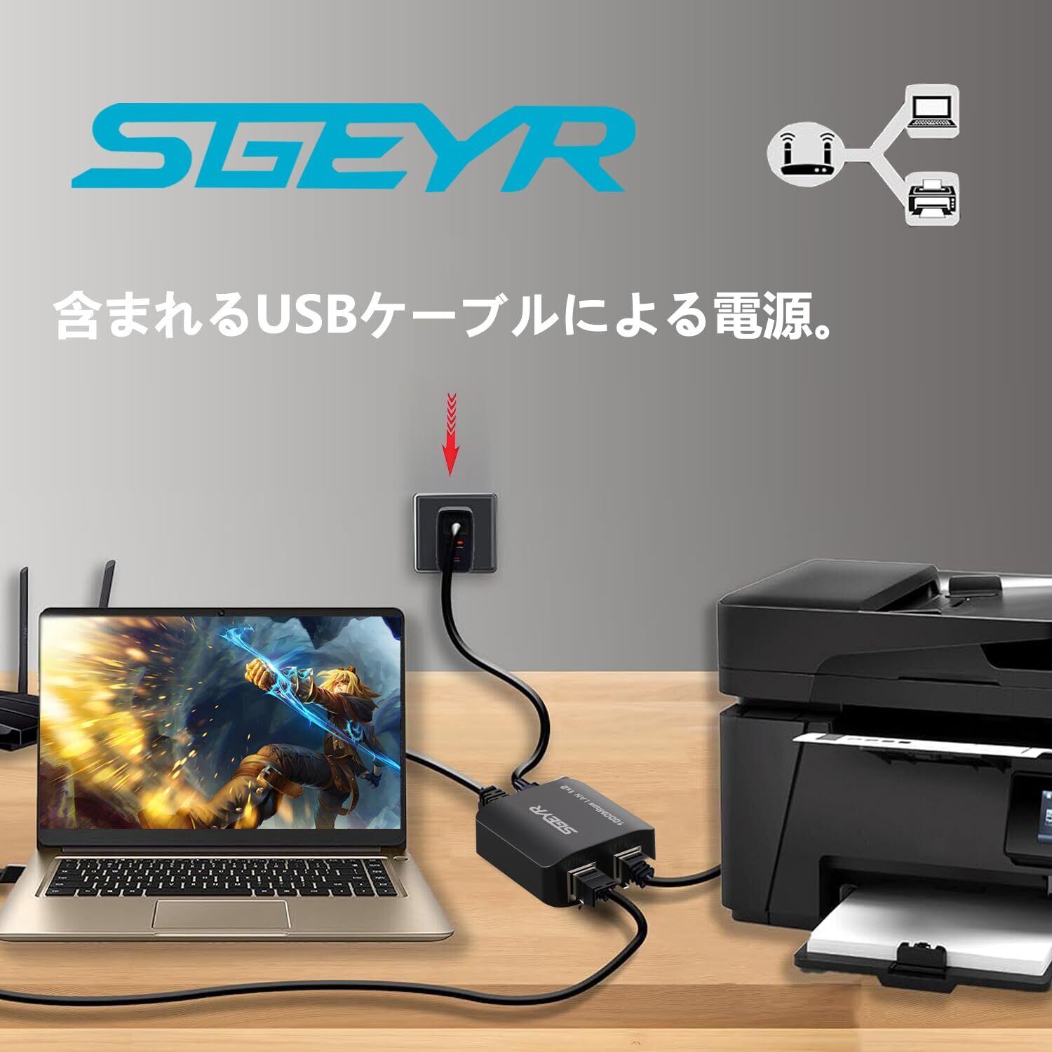 - 本製品はネットワークスプリッターです。快適なネットワーク体験を『SGEYR ギガビットイーサネットスプリッター1から2』でぜひお楽しみください。