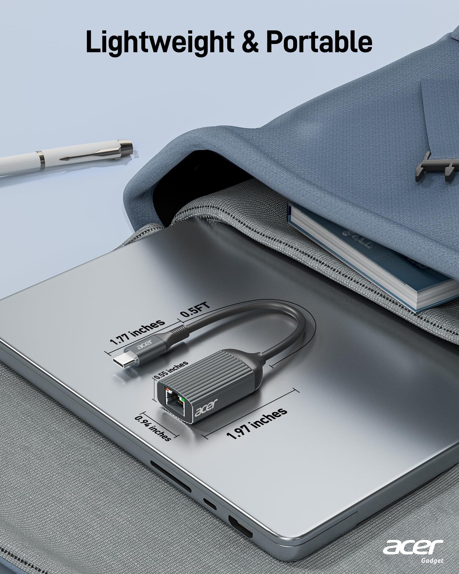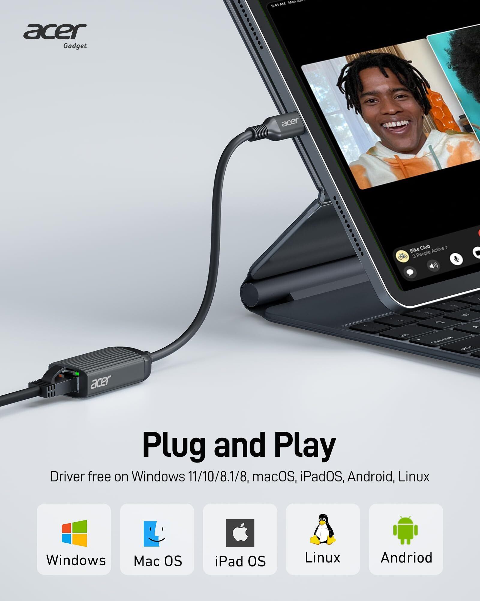 【信頼性の高い有線接続】あなたの新しいパソコンには標準的なイーサネットポートがありませんか?このUSB C-Ethernetアダプタは、部屋のWi-Fiが不安定になったり、標準的なEthernetポートがないという問題を解決します。Acer USB C Ethernetアダプタは、USB Cポートを介してノートパソコン、タブレット、または携帯電話に安定したEthernet接続を提供します。高速で安定したインターネット接続を完璧に実現します。