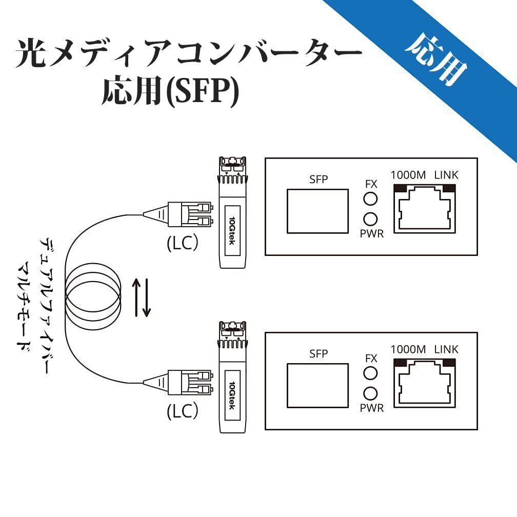 10Gtek ギガビット 光メディアコンバーター 小さいサイズ, マルチモード デュアルLCファイバー 1.25Gb/s 1000Base-SX SFP 付き セット(850nm 550m)