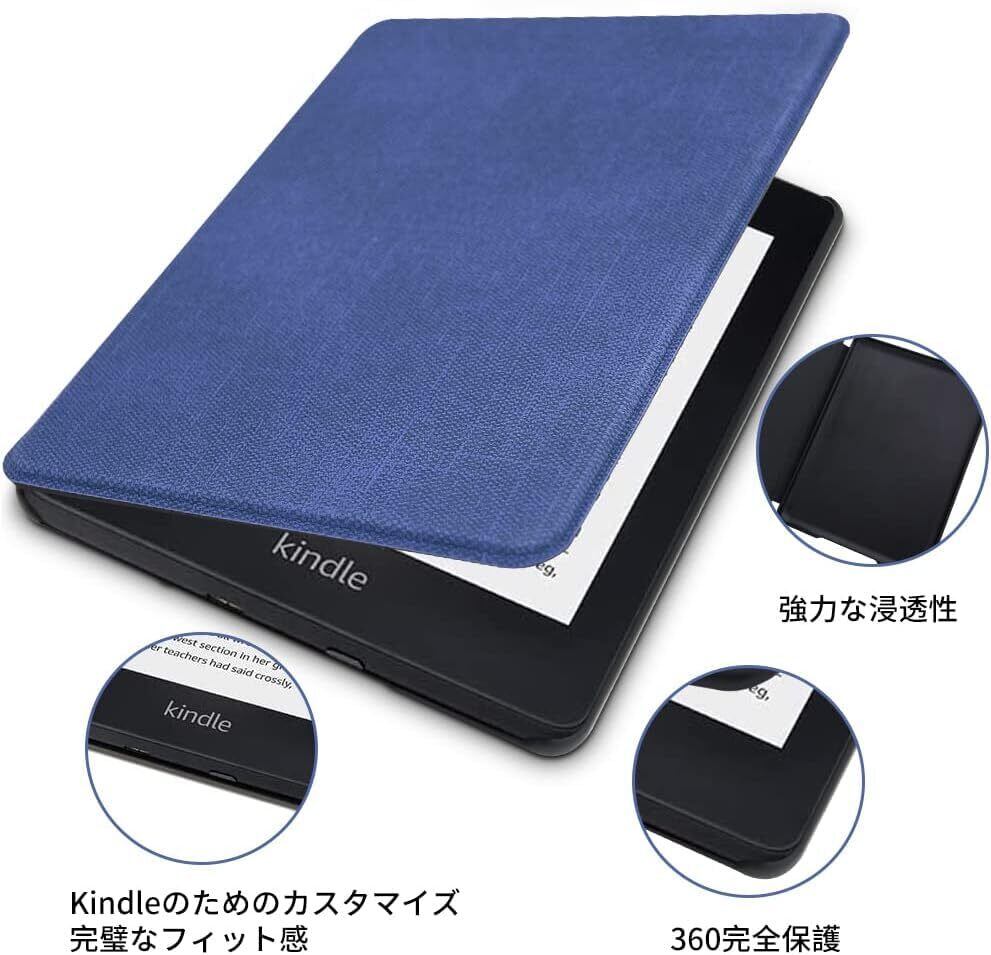 「高品質のPUレザーを使用し、衝撃や傷からKindleをしっかりと守ります。薄型ながらも、堅牢な保護性能により、万が一の落下にも安心です。また、指紋防止加工が施されていて、常に美しい状態を保つことができます。」