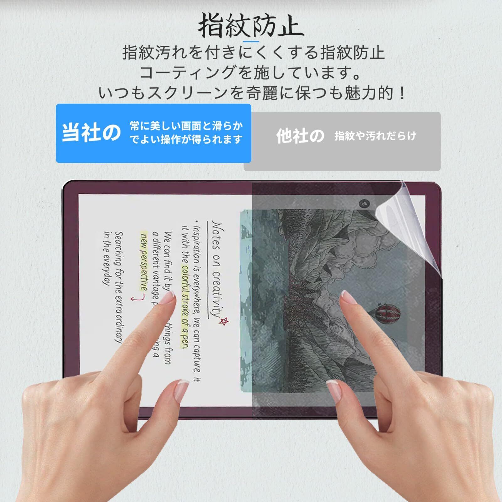 「指紋が目立ちにくい設計により、いつでもクリアな画面をキープ。高透過率により、ディスプレイの本来の美しさが損なわれず、鮮やかなイラストや文字を楽しむことができます!」