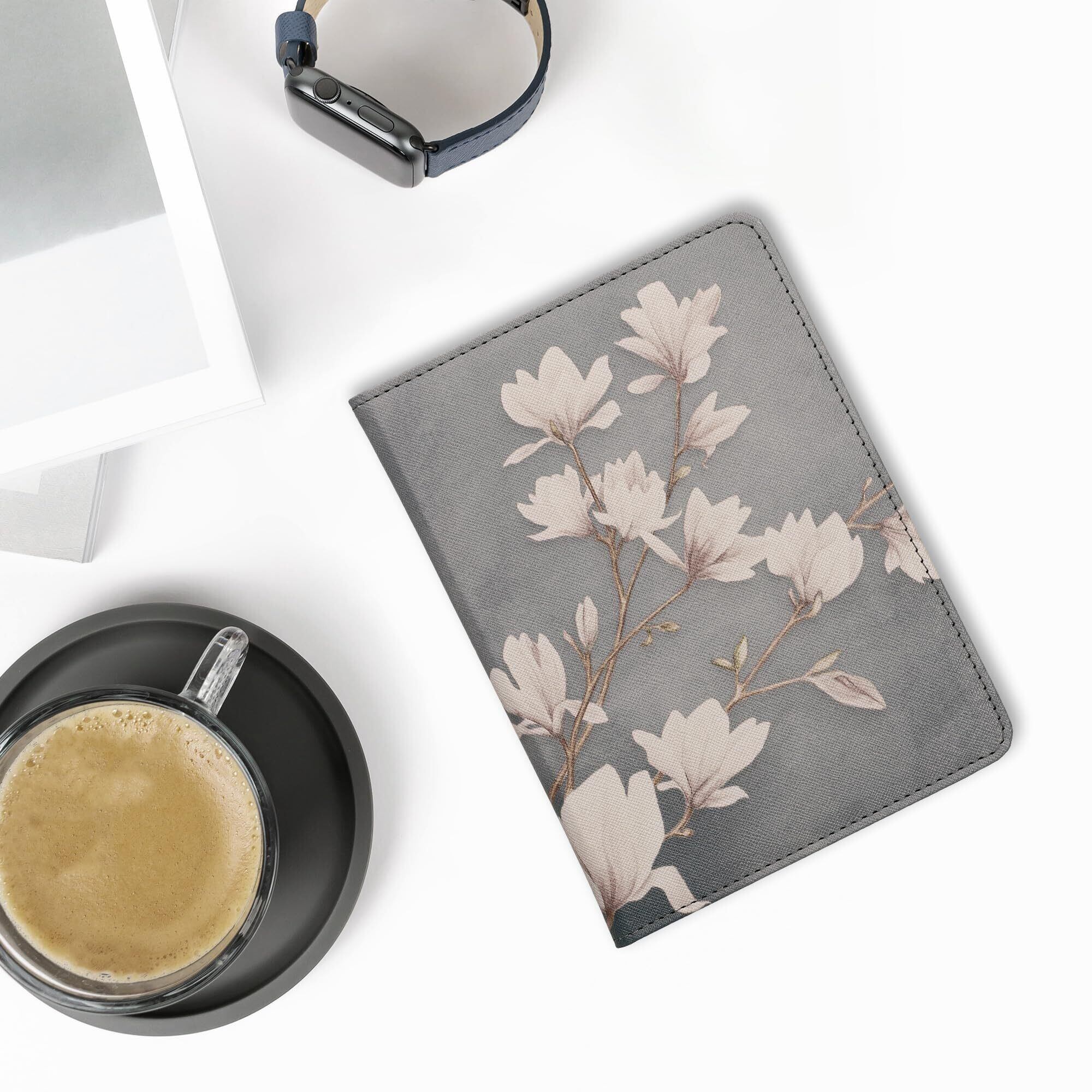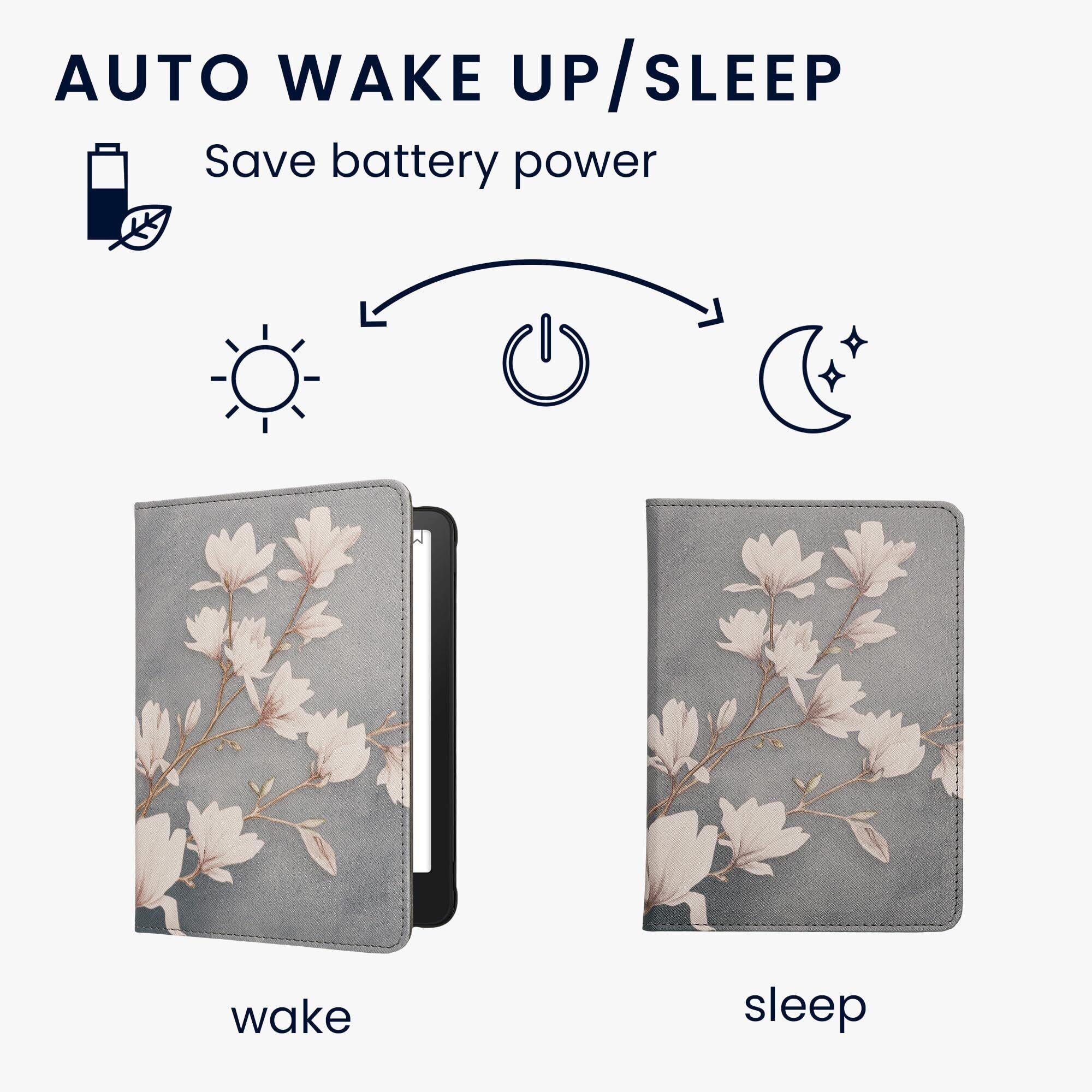 kwmobile カバー Kindle Paperwhite (2024)/Colorsoft対応 ケース - 電子書籍リーダー 手帳型 耐衝撃 PUレザー モクレンデザイン
