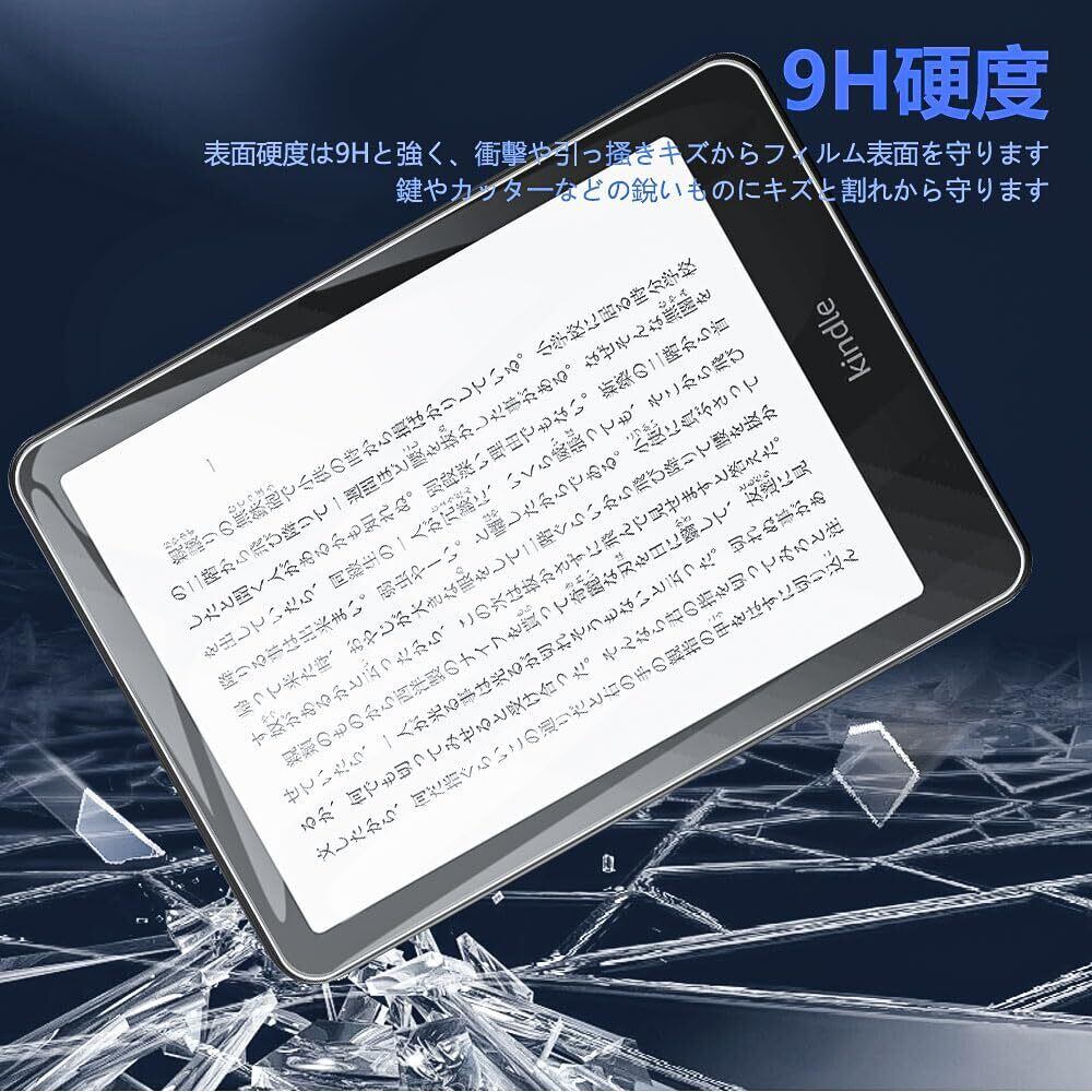 「『For New Kindle (2024年発売) 6インチ用 保護フィルム』は、最新のNew Kindle専用に設計された強化ガラスと同等の高硬度9Hフィルムです。耐久性に優れ、あなたのKindleを衝撃や傷からしっかりと保護します!」