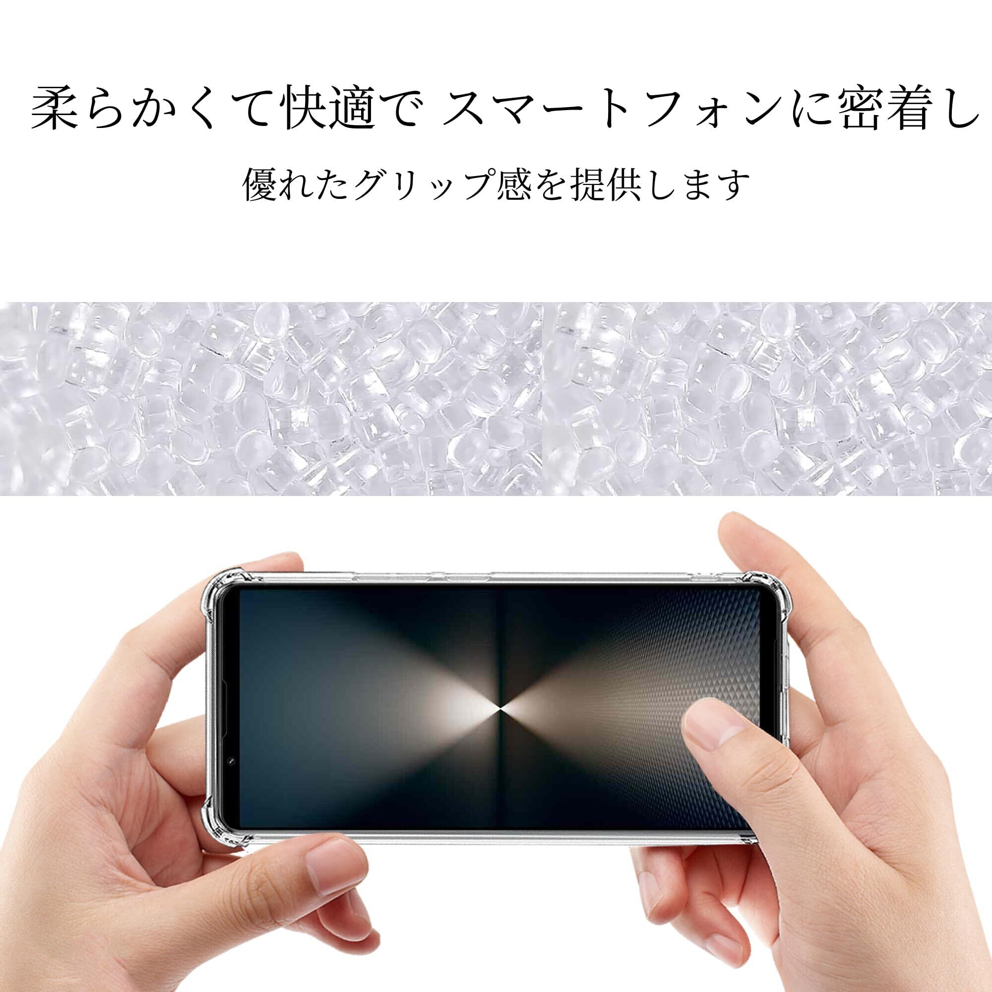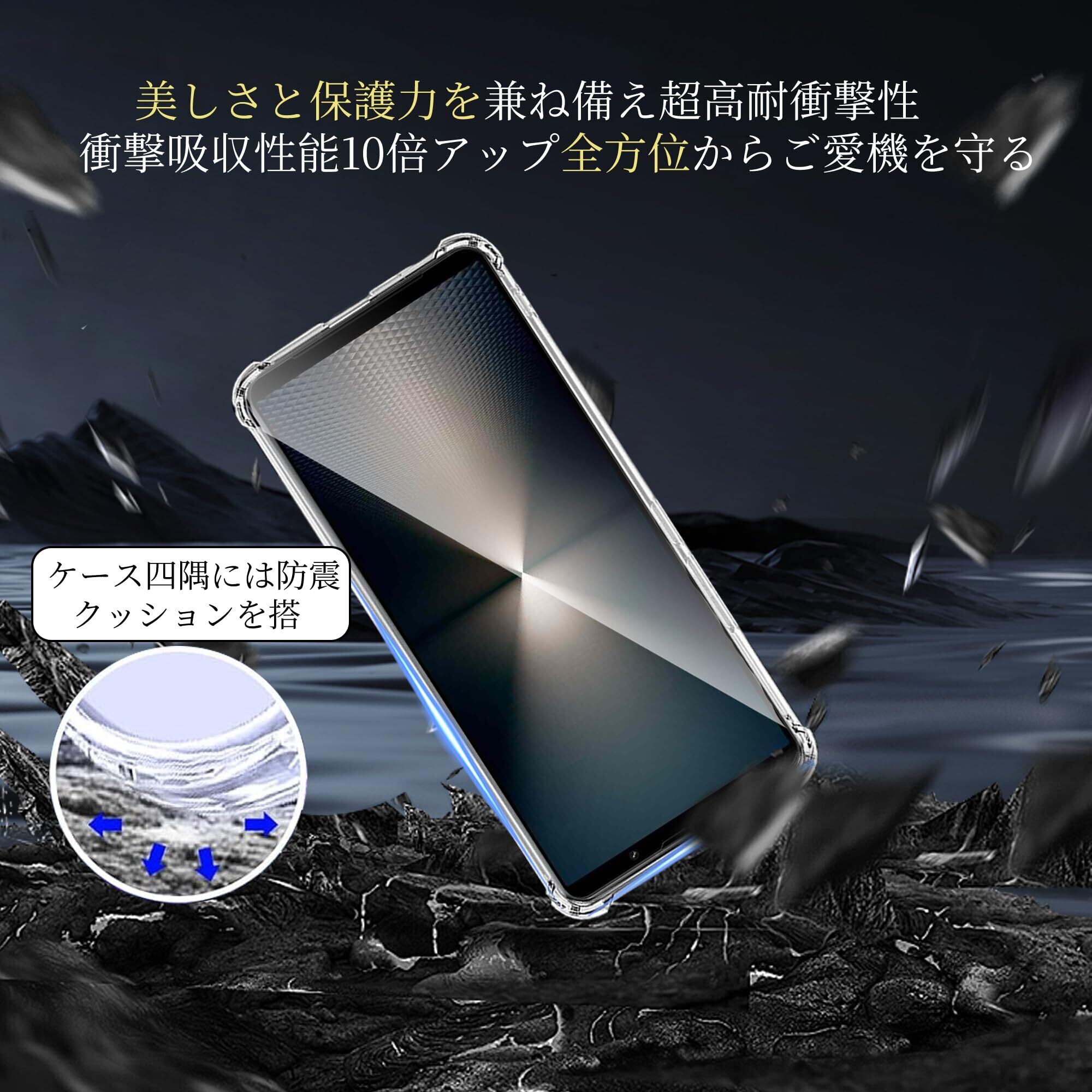 「高品質の透明TPU素材を使用しているため、長期間使用しても黄変しにくく、透明感を維持します。あなたのXperia 1 VI本来の美しさを損なうことなく、常にクリアな状態を保ちます。」