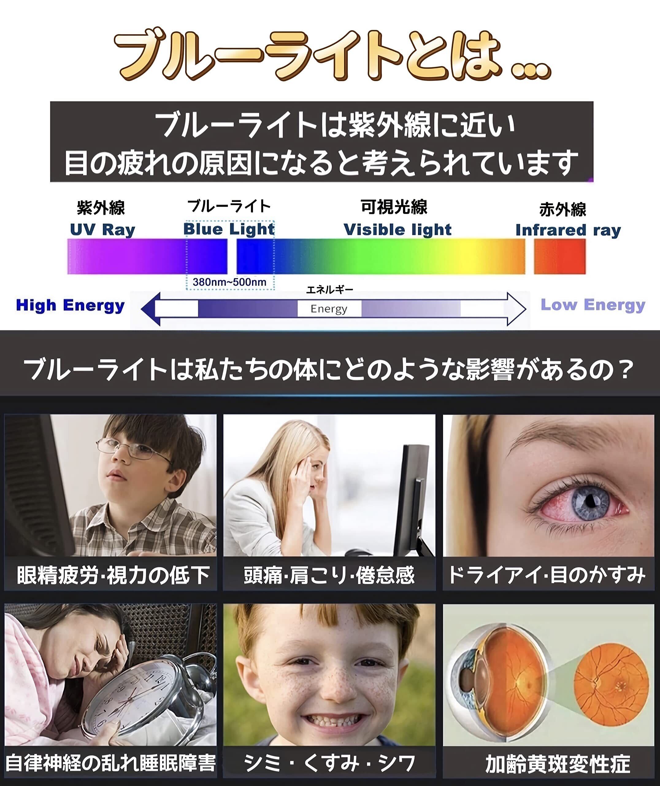 ディスプレイを見続ける機会が多い現代人の目を考えて開発のフィルムです。ブルーライトカットフィルムは液晶ディスプレイが発する光の中の青い部分「ブルーライト」最大約60%をカットできます、お子様の目を保護します。