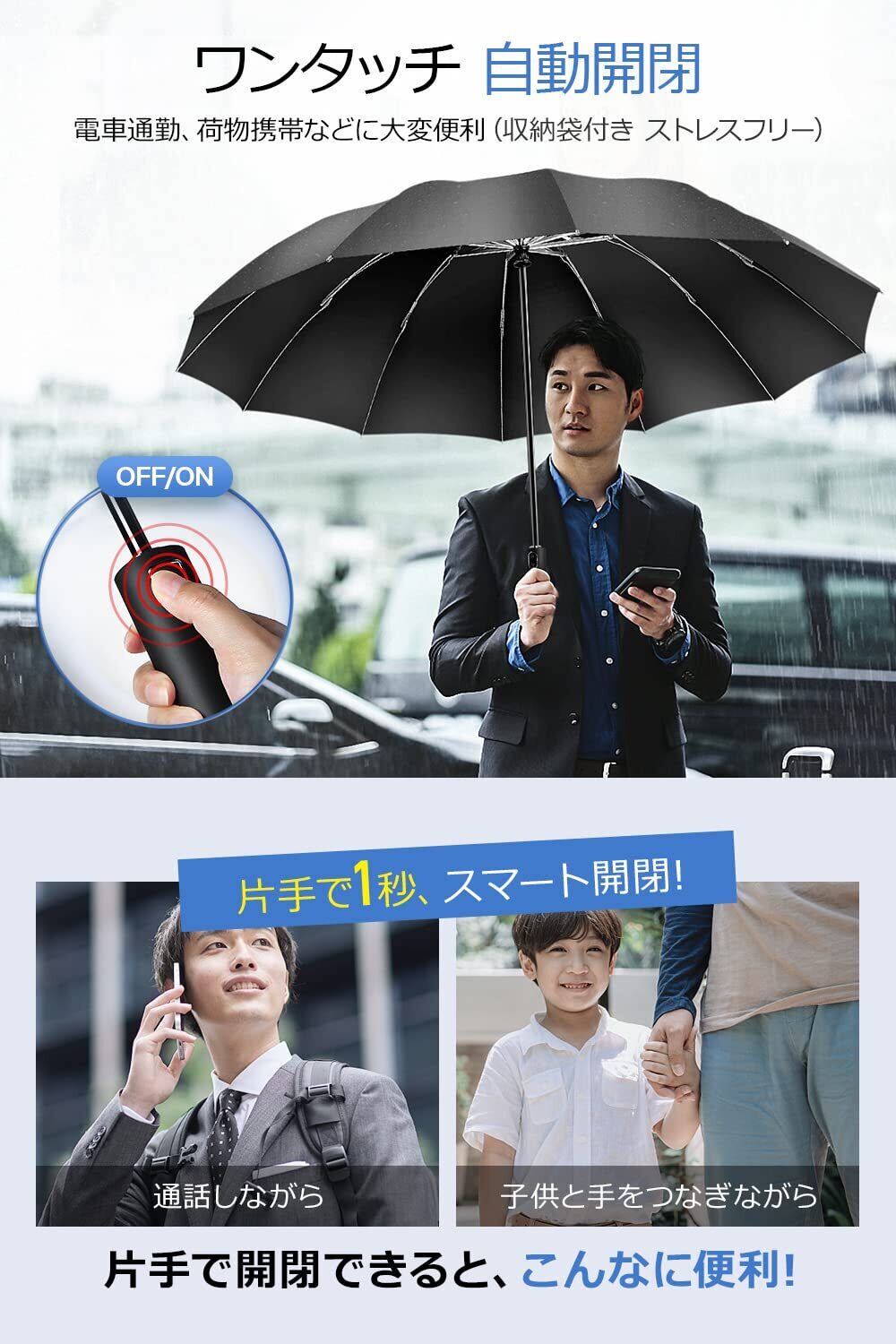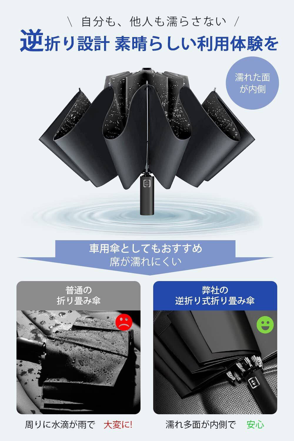 **\新発売!/ 【超大サイズ・12本骨】 折りたたみ傘|風に強い逆折り式、梅雨や台風にも安心の自動開閉傘!**