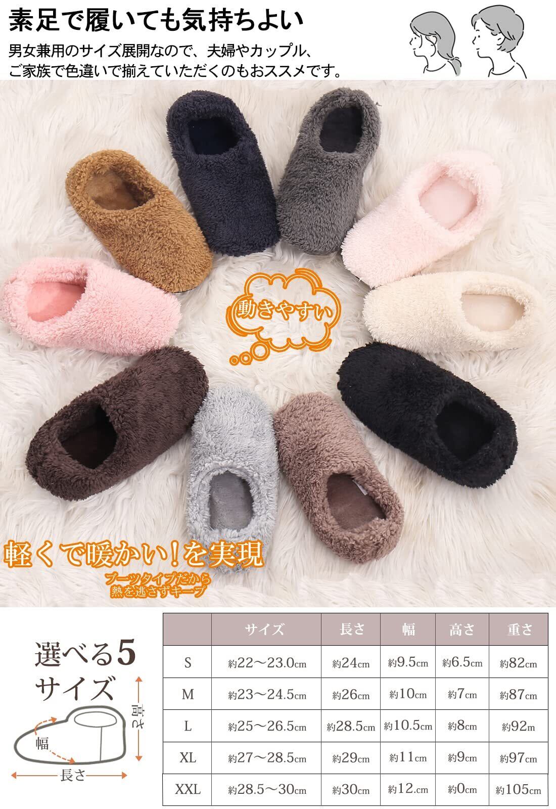 「かかと付きのデザインが寒さをしっかりと防ぎ、足冷えを対策します。冬の寒さを心地よく乗り切るための必需品として、あなたの足元を温めます!」