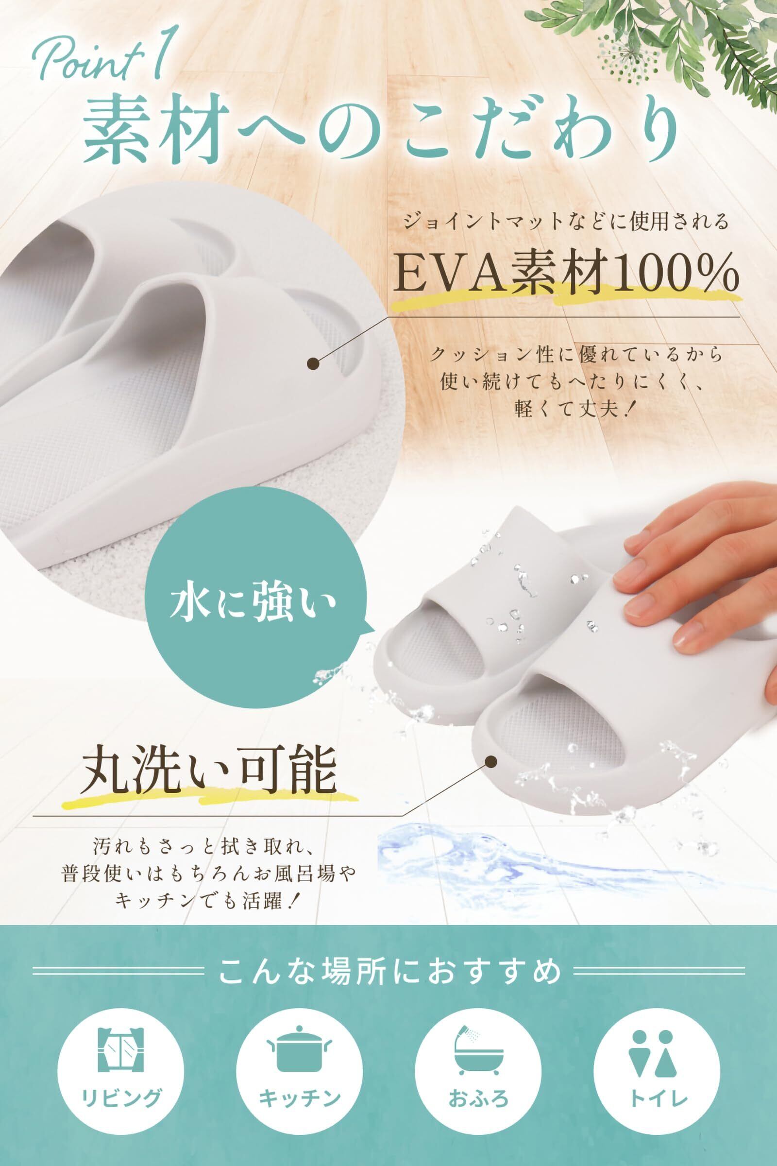 「専用の抗菌防臭素材を使用しており、気になるニオイの原因となる菌の増殖を抑えます。清潔感を保ちながら、快適にご使用いただけます。さらに、自宅で簡単に洗えるスリッパなので、いつでも新鮮な状態でご利用いただけます。」