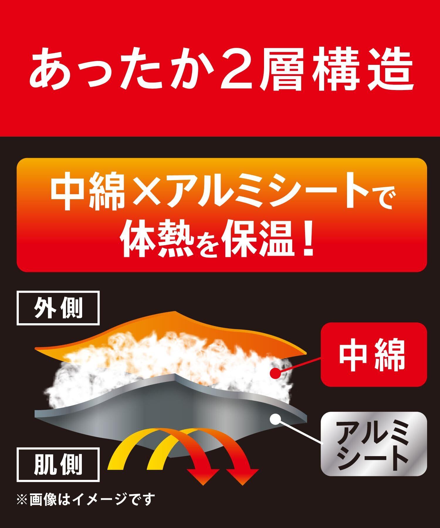 【保温/軽量】中わたとアルミシートの2層構造によって、温かさを保ちます。軽くて持ち運びもラクチンです。