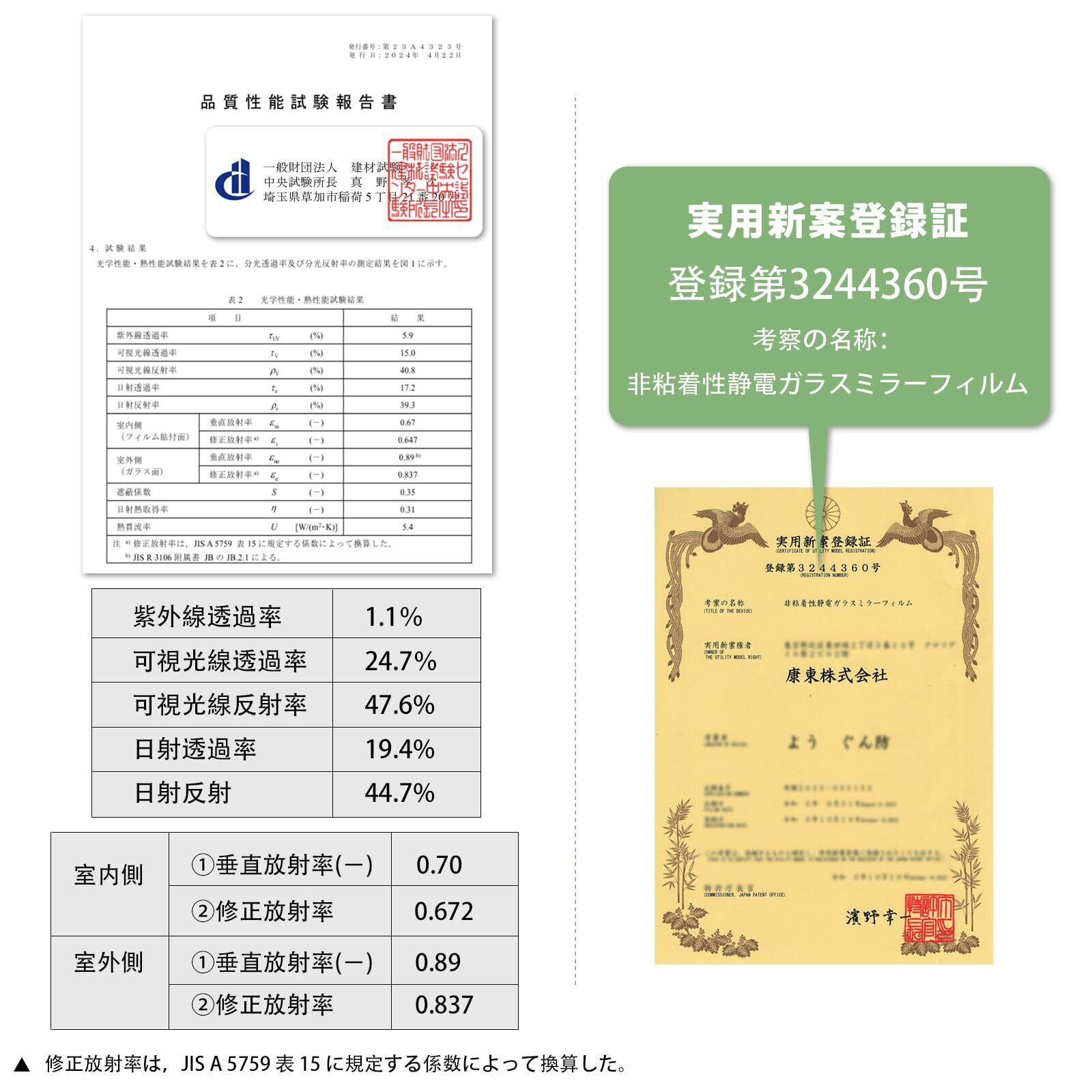 【遮熱断熱シート&エアコン効率アップ】 遮熱フィルムが赤外線(太陽熱)を85%以上反射吸収するので、室内に入る熱を抑え、冷房で涼しくなった室温を保つ事ができます。断熱フィルムは室内の暖房を外に逃がさず、外からの冷気の侵入を抑える効果があります。室内の温度差を小さくし、冷暖房設定温度の緩和が可能になり、エアコンのコスト削減に繋がります。